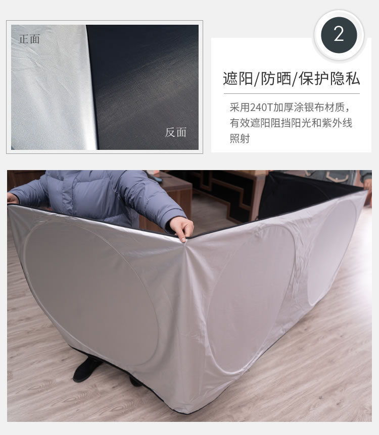 产品材质: 240T涂银布 (正面银色 反面黑色 也可定做其他颜色 )