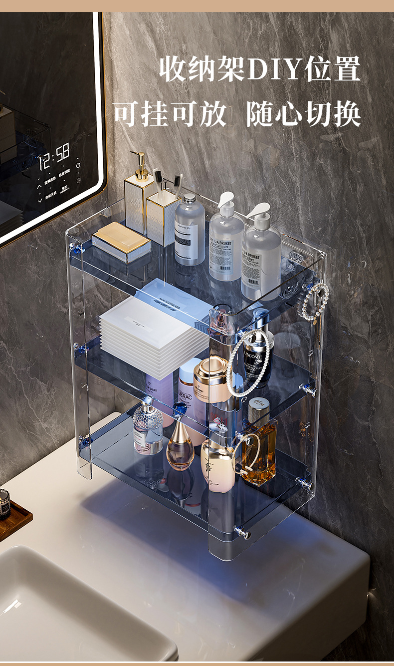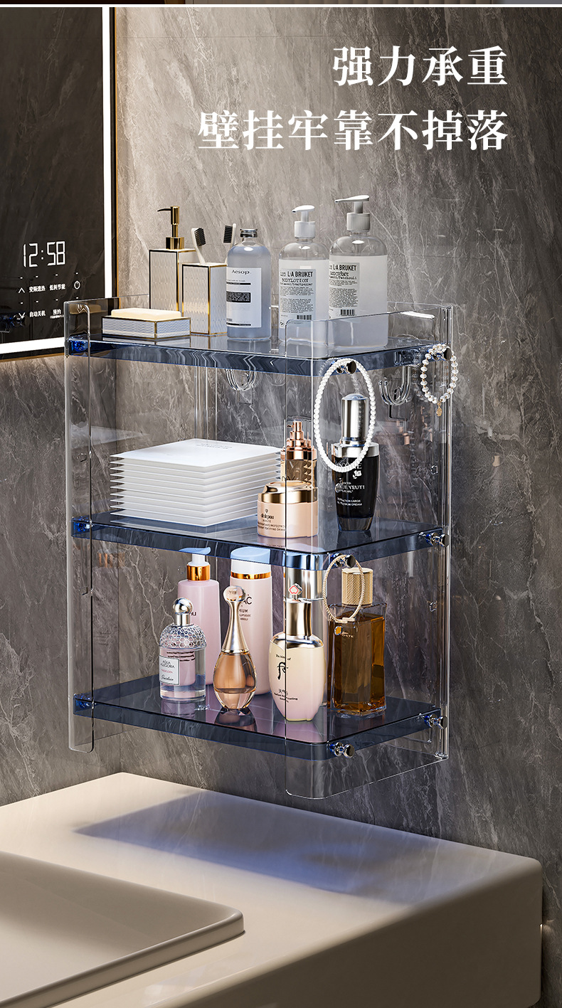 메이크업 테이블 보관함 화장품 보관함 욕실 보관함 펀치없는 욕실 보관함 벽걸이 형 다층