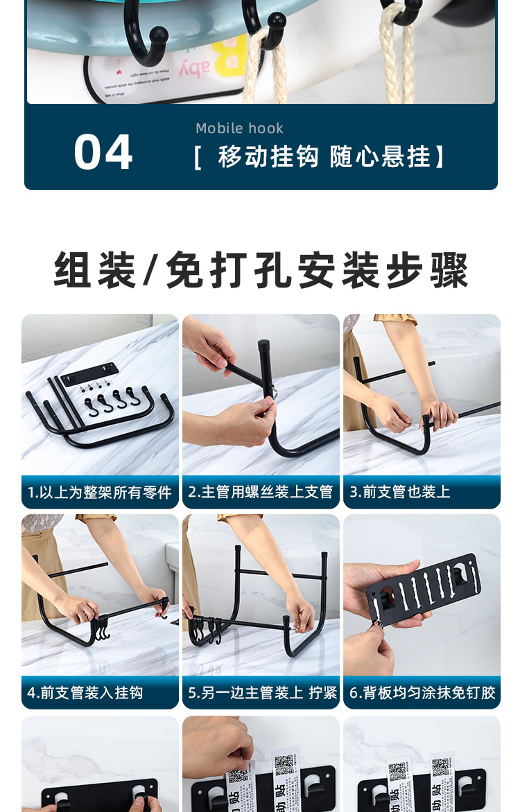 • 대형 검정색 벽걸이형 세면대 랙