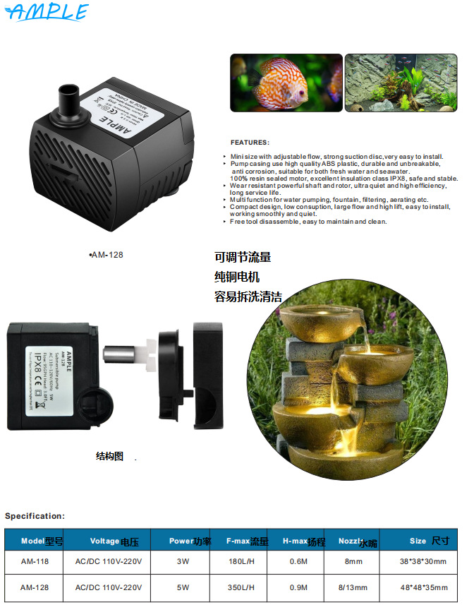 가벼운 수족관 분수 펌프로 도매 잠수정 펌프 대외 무역 미국 규정 유럽 규정 영국 규정 호주 규정 분수 펌프