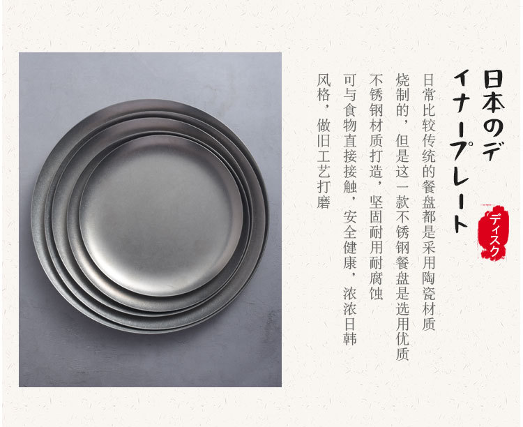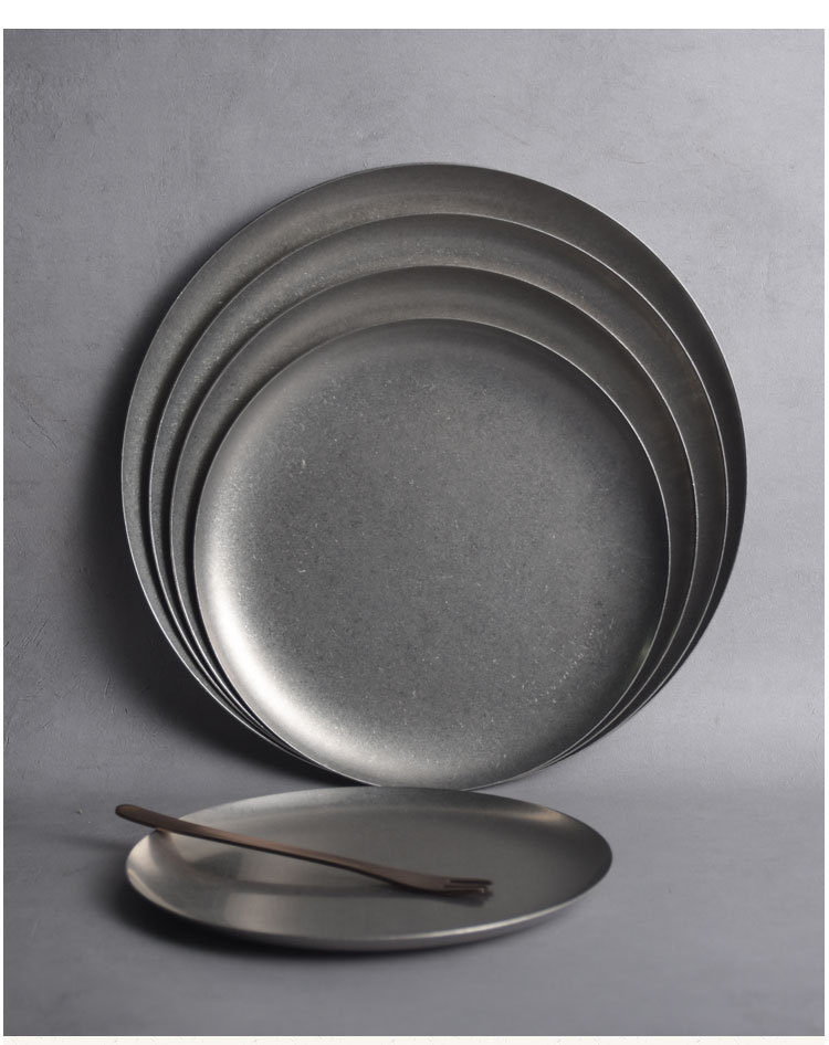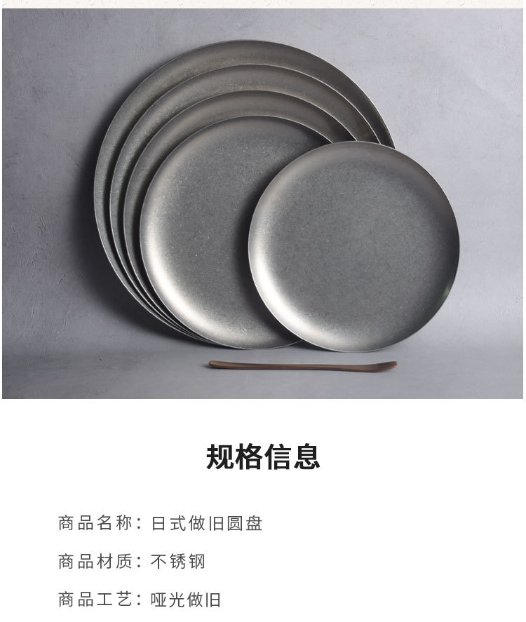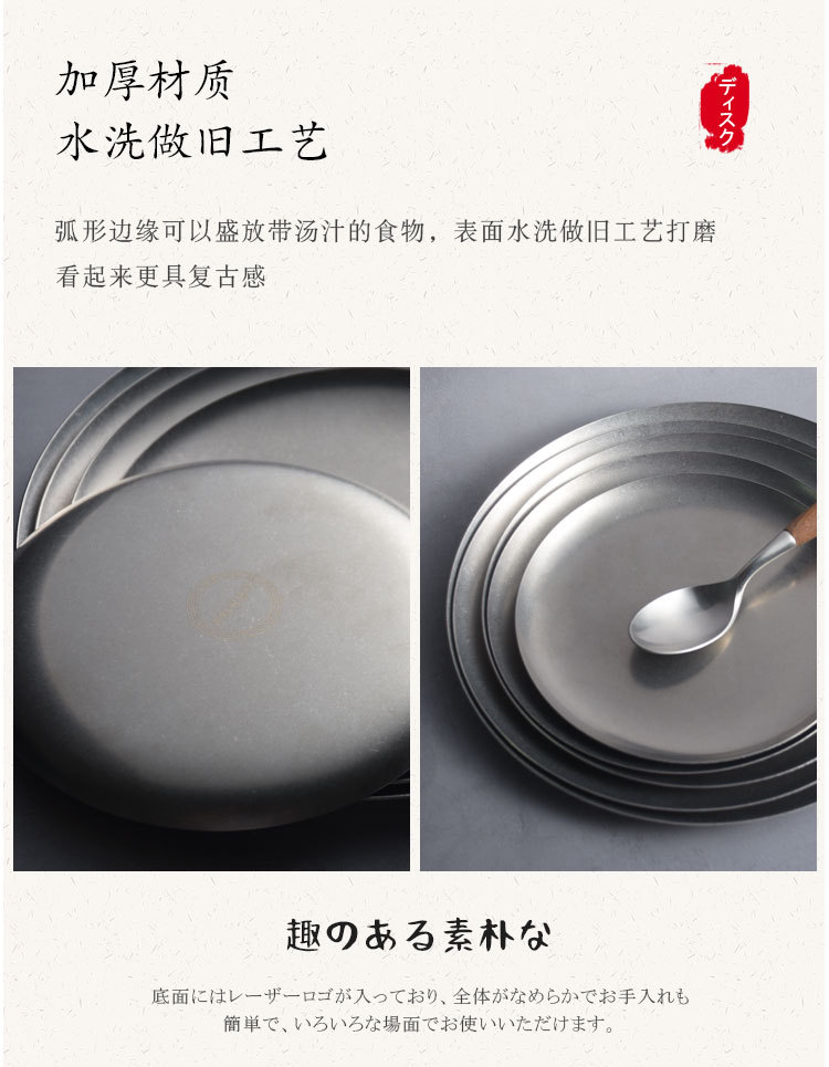 일본식 스테인레스 스틸 서양 음식 디스크 가정용 레스토랑 스테이크 Pagliatella 플레이트 오래 된 빈티지 접시 플랫 플레이트스토어 가기
