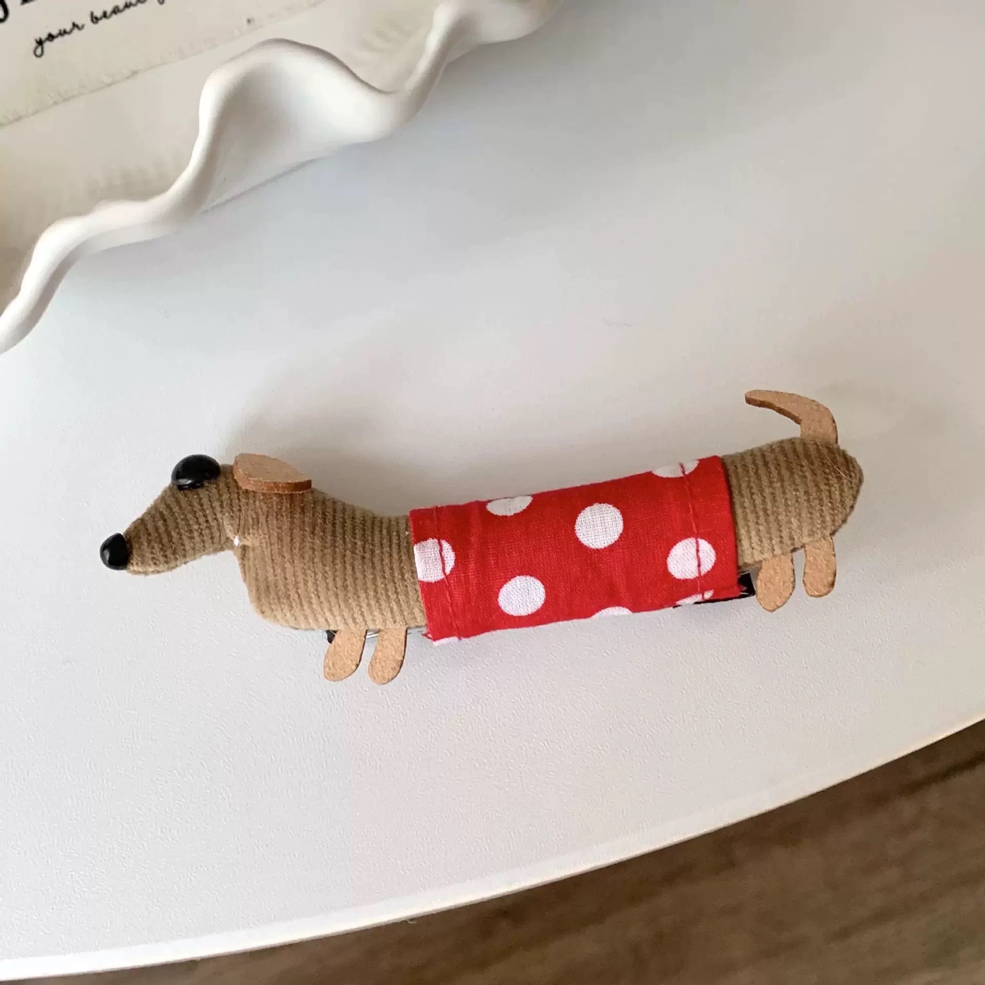 • 레드 폴카 도트 닥스훈트 머리핀
