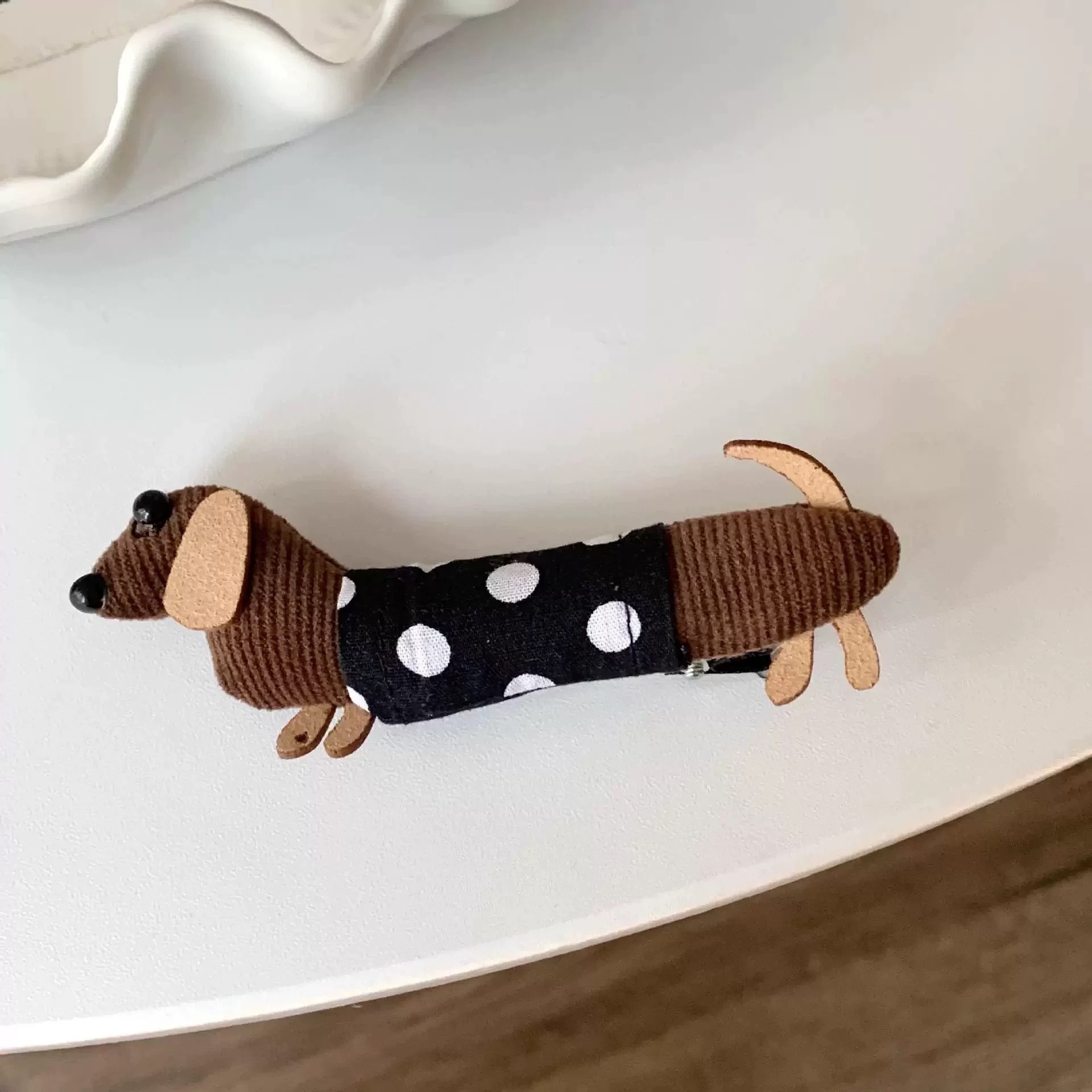 • 블랙 폴카 도트 닥스훈트 머리핀