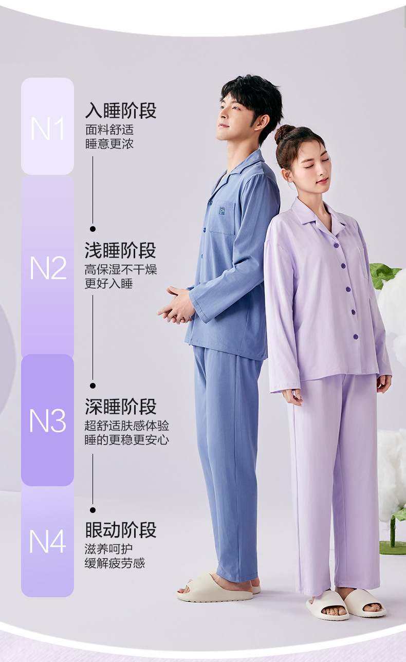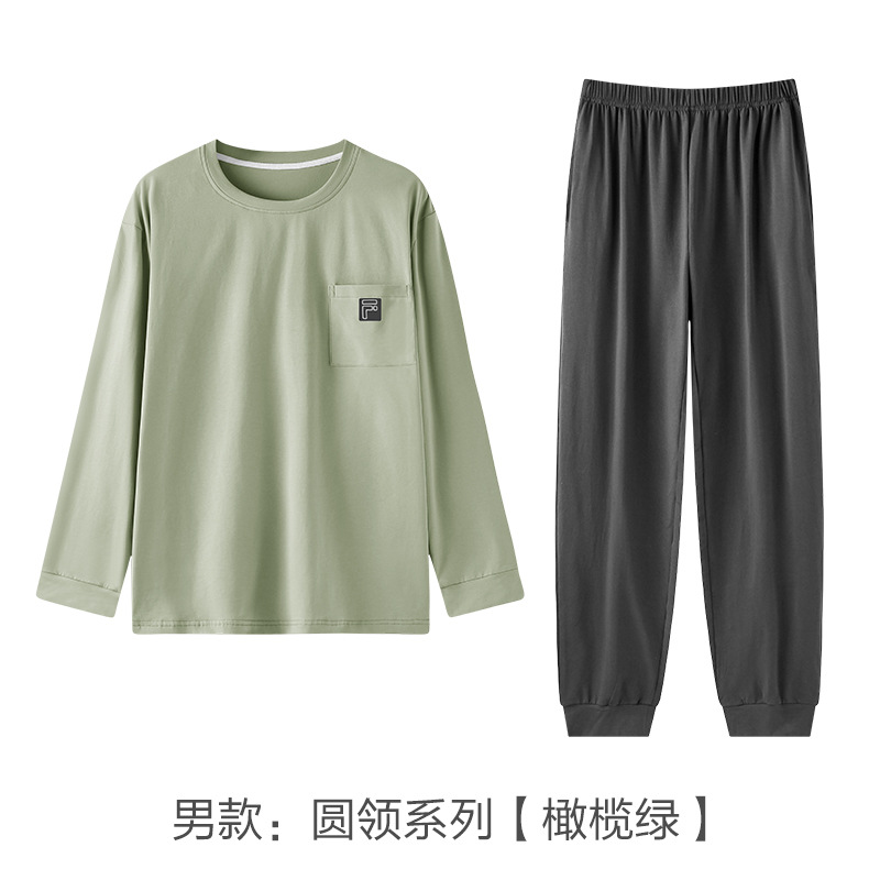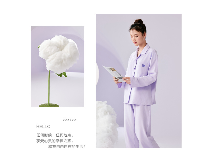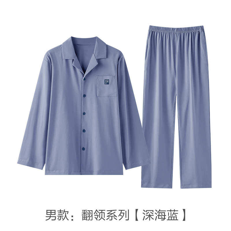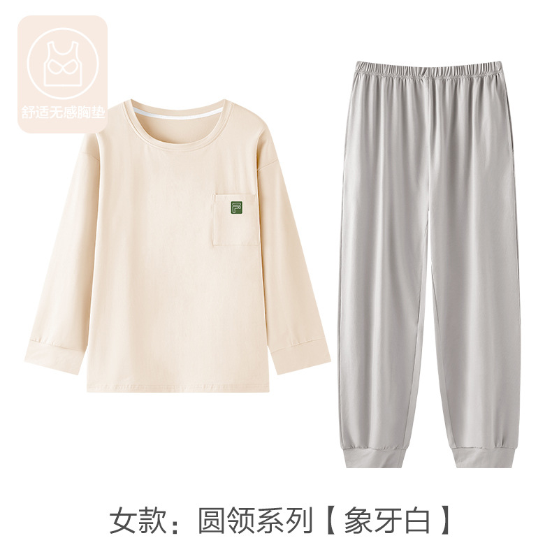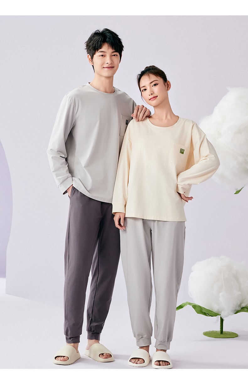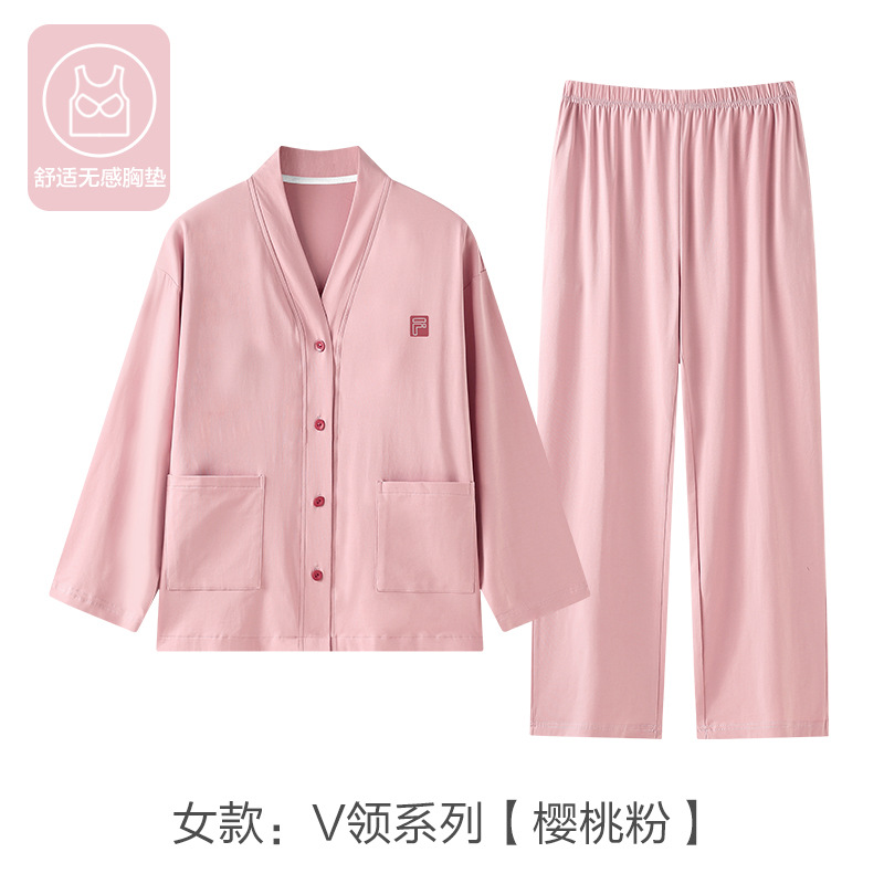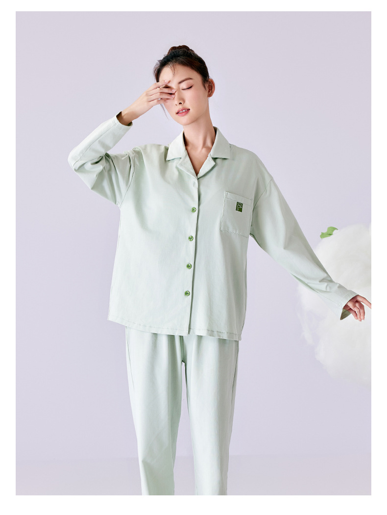 커플용 순면 홈웨어 봄 가을 여성용 가슴 패드 포함 긴팔 가디건 얇은 단색 남녀 잠옷 세트스토어 가기