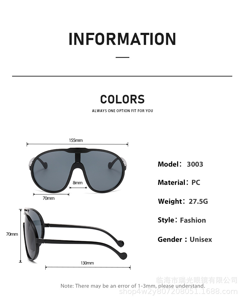 유럽과 미국의 국경 간 프레임없는 대형 여성 원피스 선글라스 중립 방풍 대형 프레임 야외 선글라스 도매스토어 가기