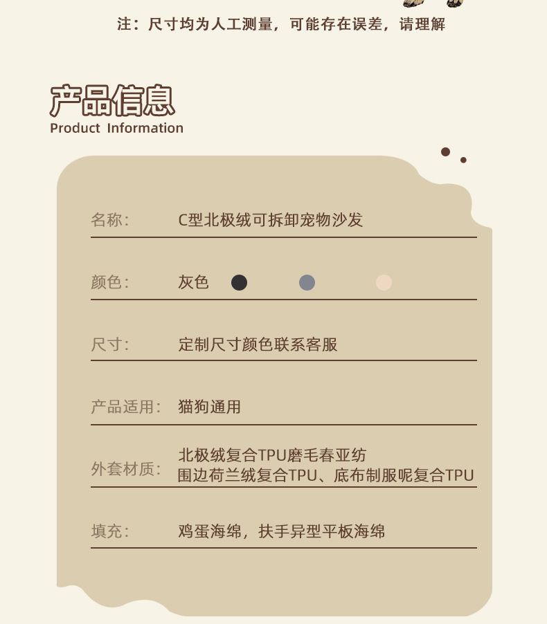 아마존 북극 양털 C 형 애완 동물 소파 사계절 유니버설 따뜻한 고양이 둥지 스폰지 개 침대 이동식 및 세척 가능한 큰 개 패드스토어 가기