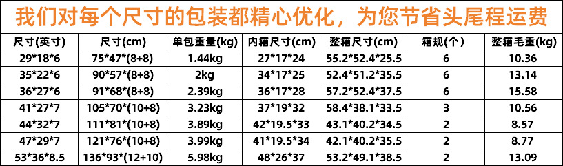 • ( 53inch )136*93*(12+10)cm(여러개 또는 대형)