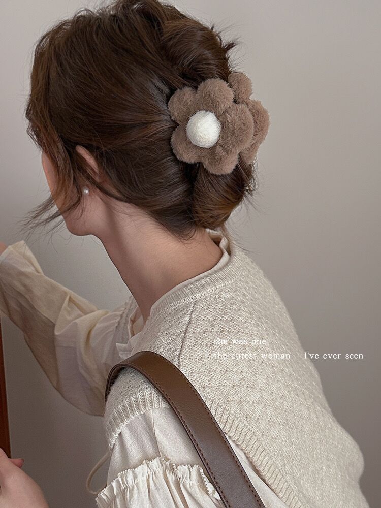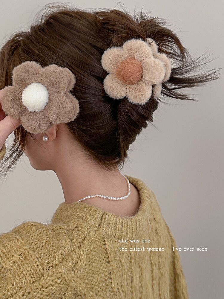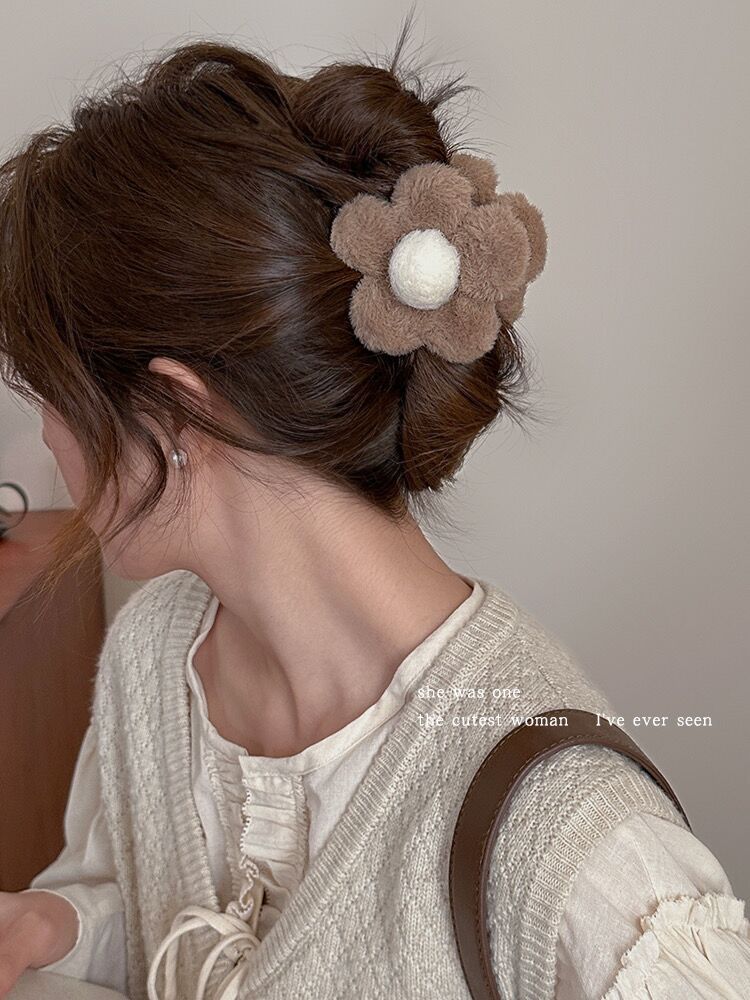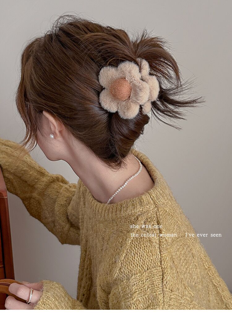 귀여운 봉제 꽃 그랩 클립 달콤한 가을과 겨울 새 머리 반 넥타이 헤어핀 부드러운 한국 스타일 우아한 인터넷 연예인 헤어 액세서리스토어 가기