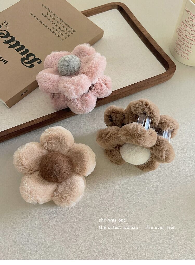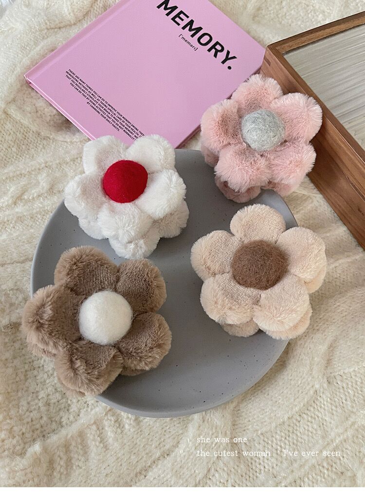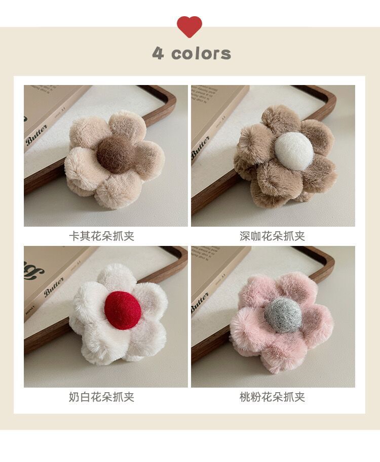 귀여운 봉제 꽃 그랩 클립 달콤한 가을과 겨울 새 머리 반 넥타이 헤어핀 부드러운 한국 스타일 우아한 인터넷 연예인 헤어 액세서리