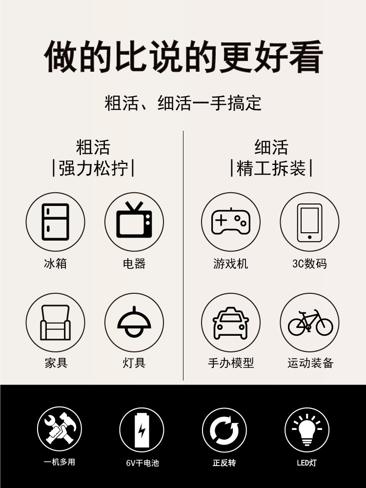 국경 6V 건식 전기 휴대용 전기 스크루 드라이버 미니 하드웨어 도구 세트 제조업체 스트레이트 핸들 스크루 드라이버스토어 가기