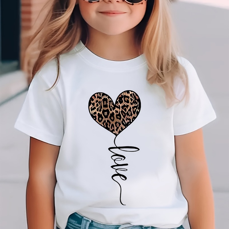 국경 간 대외 무역 INS 소녀 사랑 표범 패턴 소녀 라운드 넥 티셔츠 어린이 캐주얼 여름 원피스 1-8 년 동안 적합스토어 가기