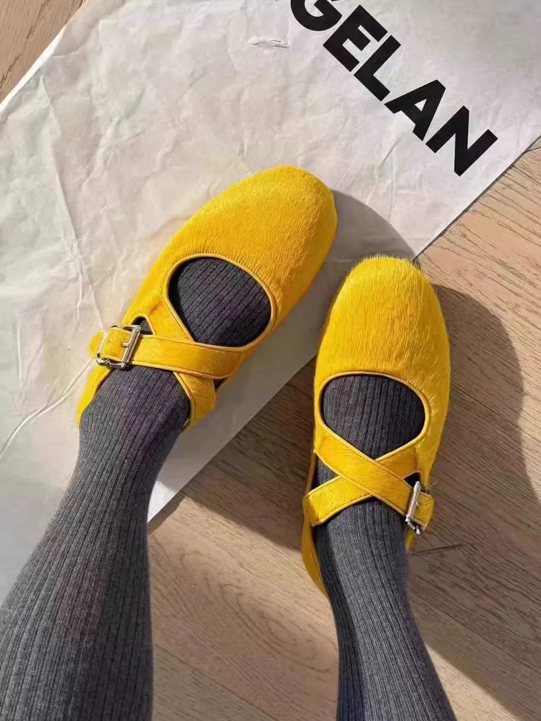 양가죽 버전 ~ 한국식 라운드 헤드 레오파드 무늬 크로스 메리 제인 신발 여성 정품 가죽 플랫 싱글 레이어 신발 올매치 게으른 가죽 신발스토어 가기