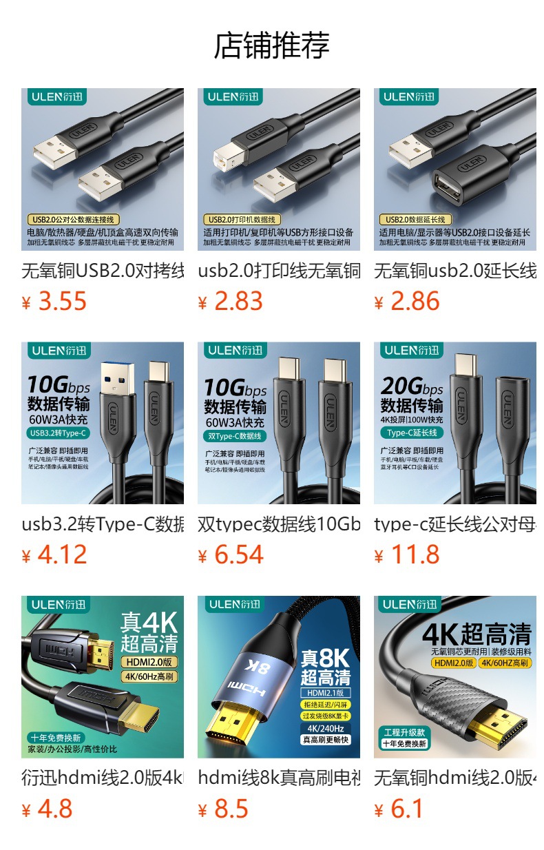 • 0.5m USB2.0 [원형 스타일] USB2.0*4 포트