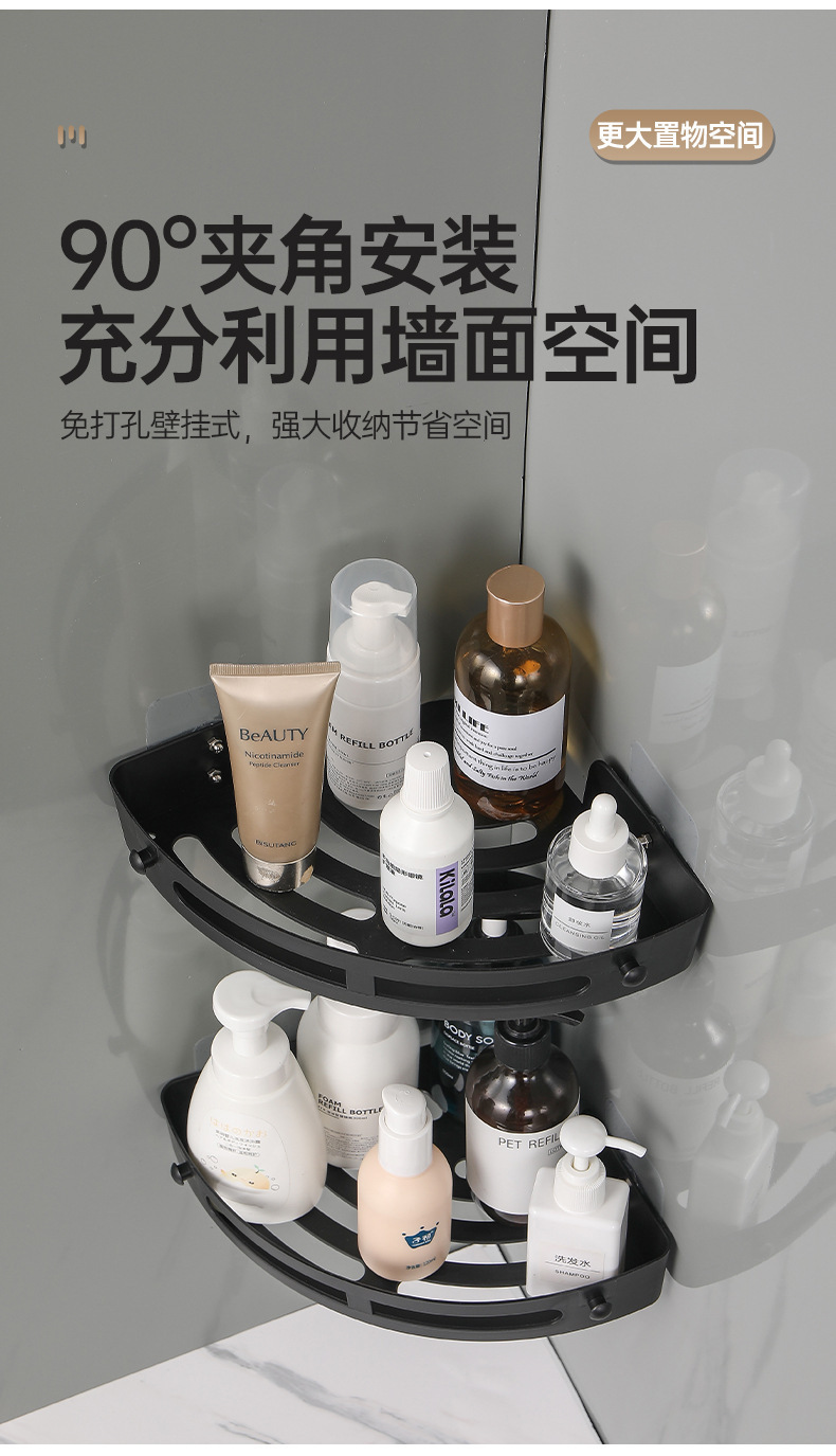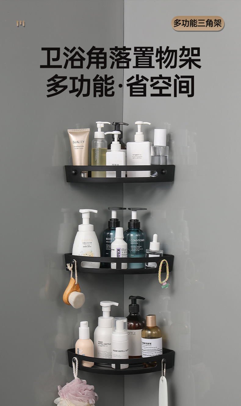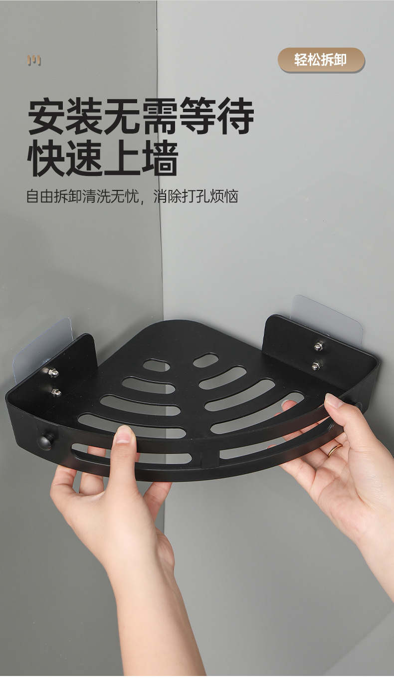 욕실 수납 선반, 못이 없는 세면대 벽걸이형 화장실 주방 수납 선반, 무타공 삼각형 욕실 수납 선반