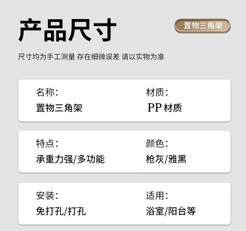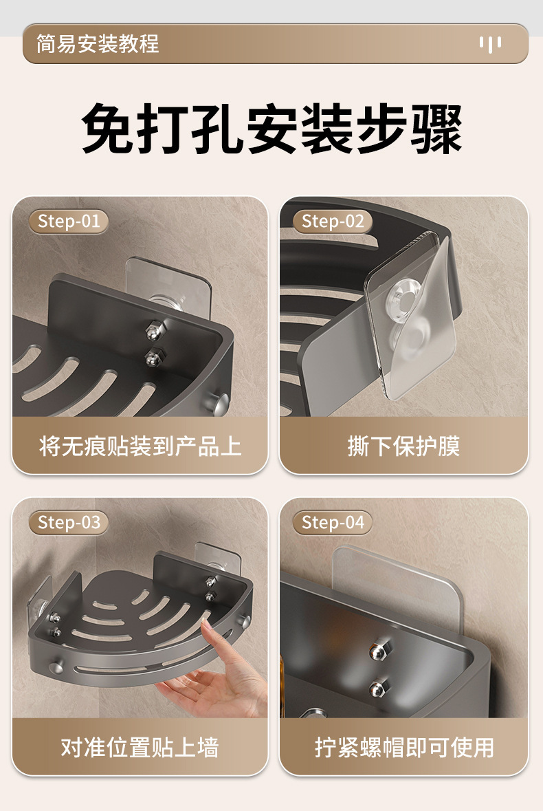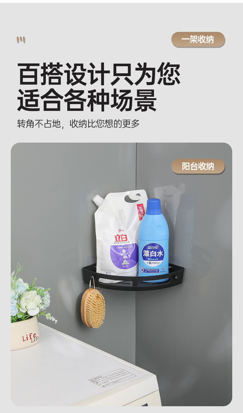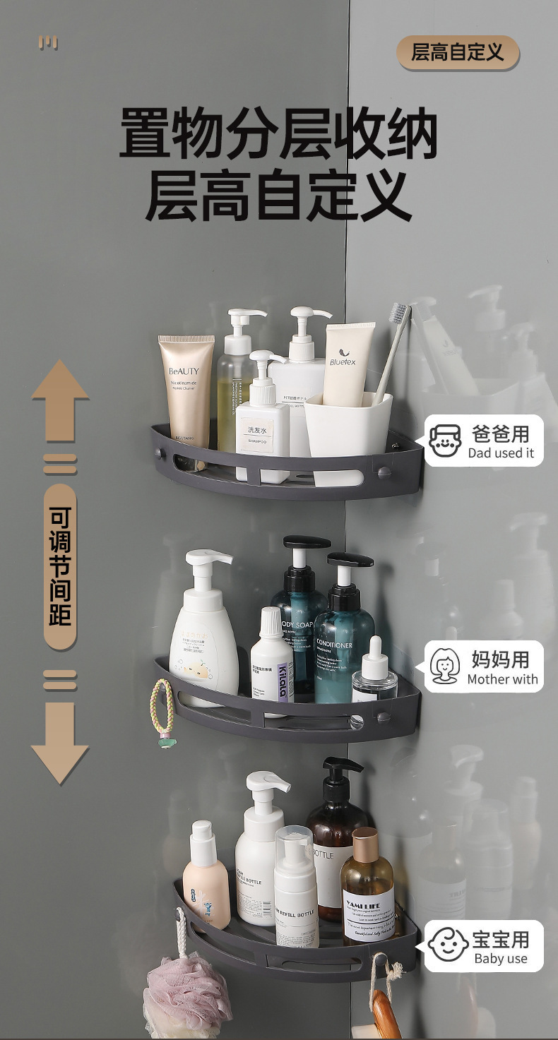 욕실 수납 선반, 못이 없는 세면대 벽걸이형 화장실 주방 수납 선반, 무타공 삼각형 욕실 수납 선반