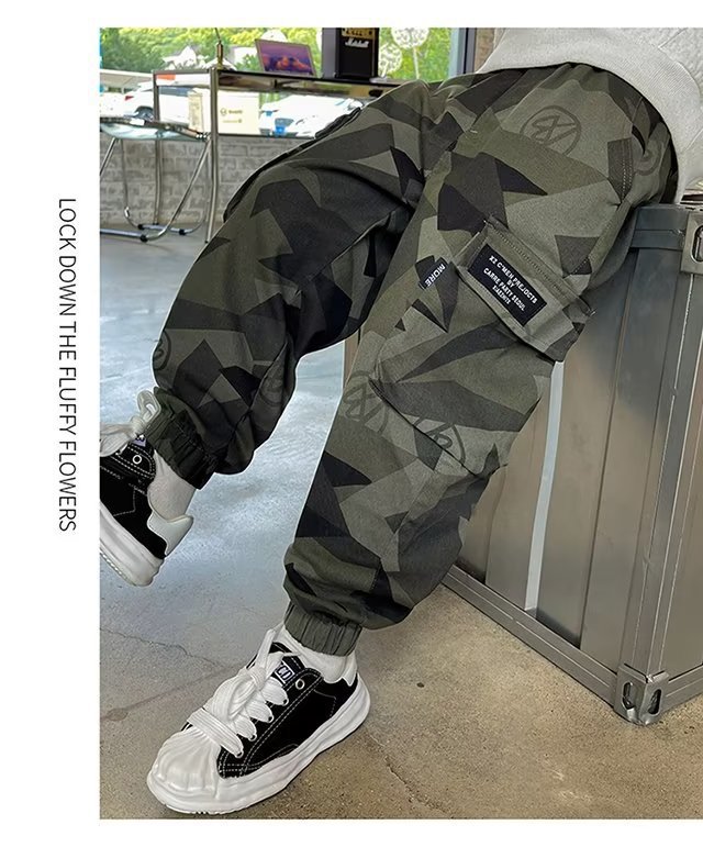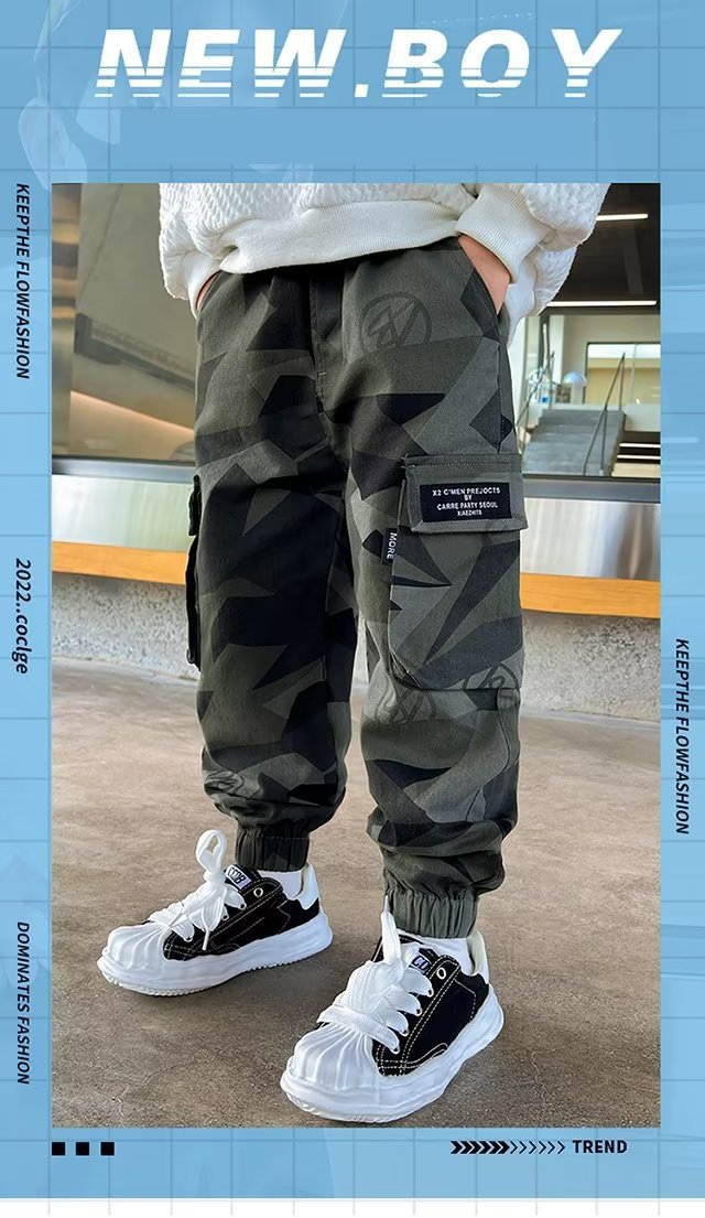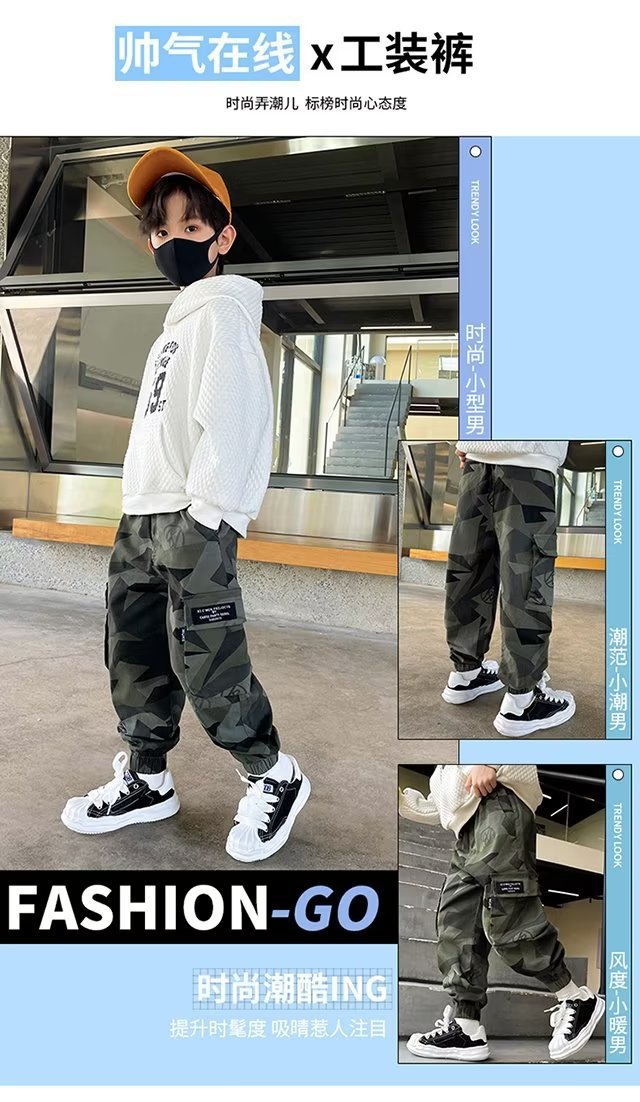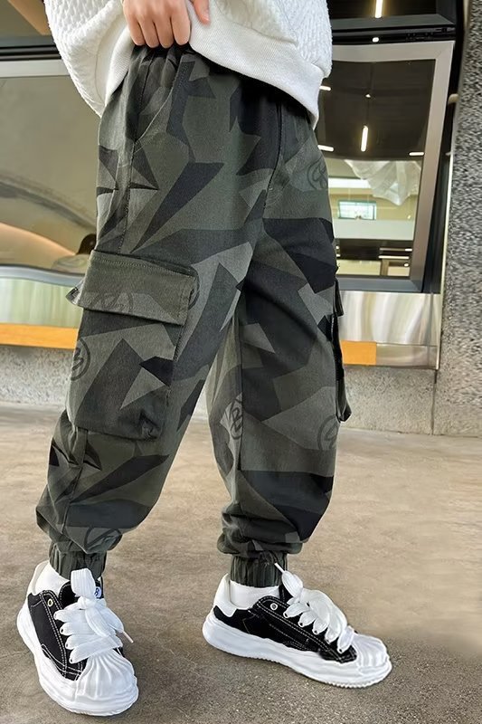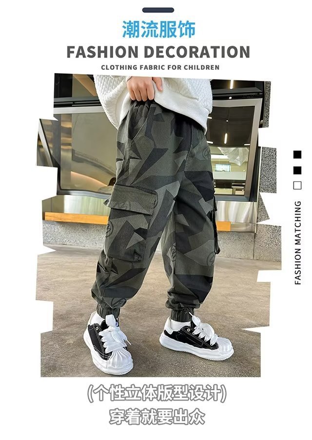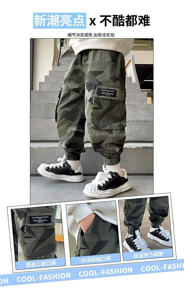 소년 바지 위장 크레인 바지 가을 겨울 2024 새로운 어린이 한국식 발목 바지 소년 따뜻한 바지스토어 가기