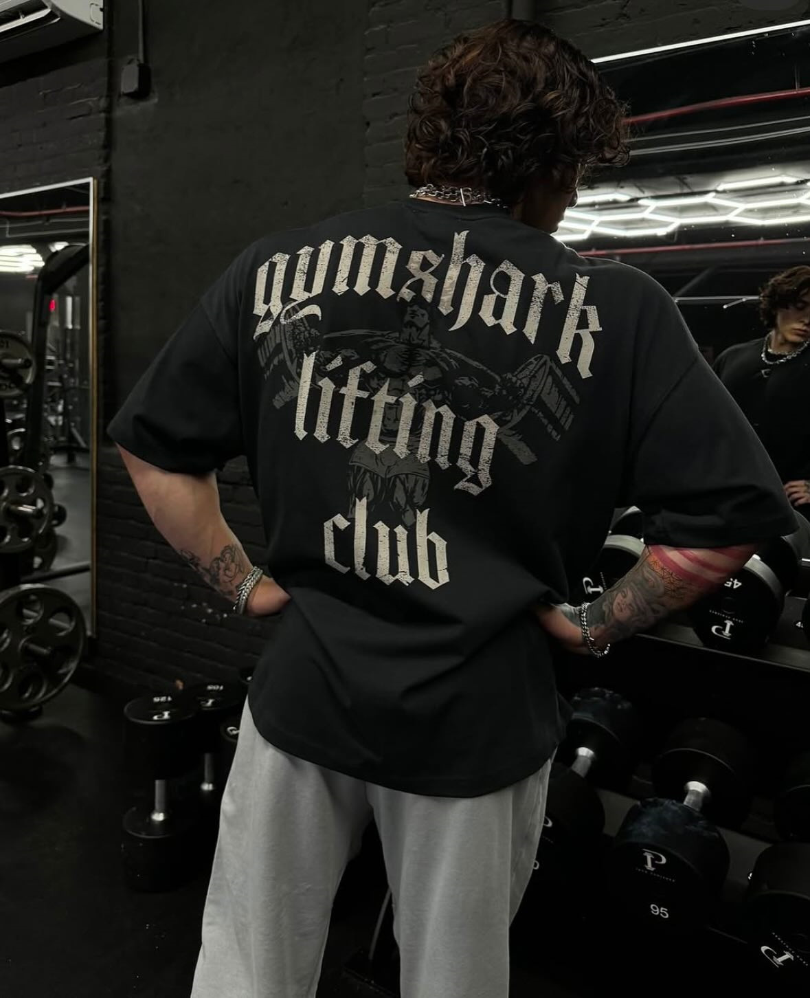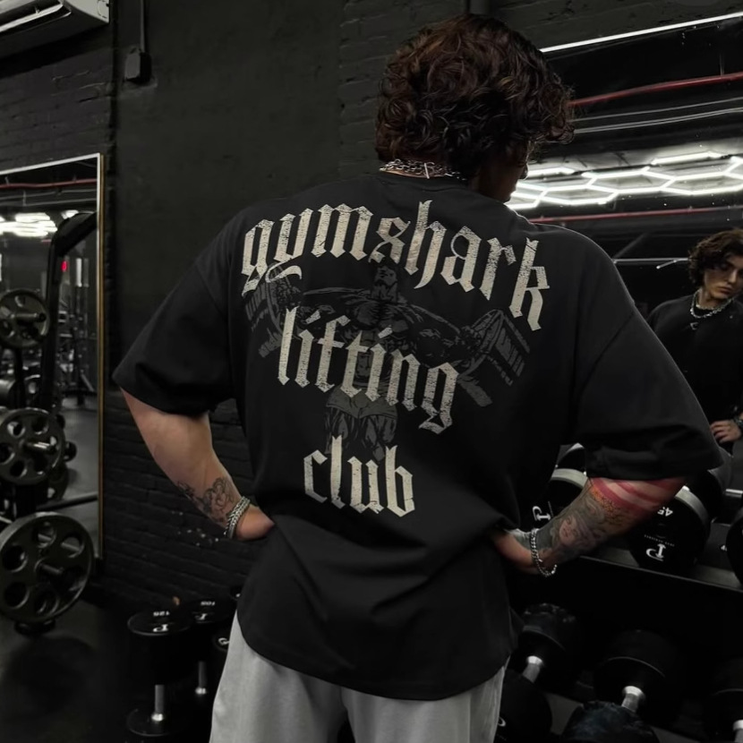 체육관 상어 미국 패션 브랜드 새로운 Ins 핫 남성 스포츠 피트니스 티셔츠 패션 느슨한 근육
