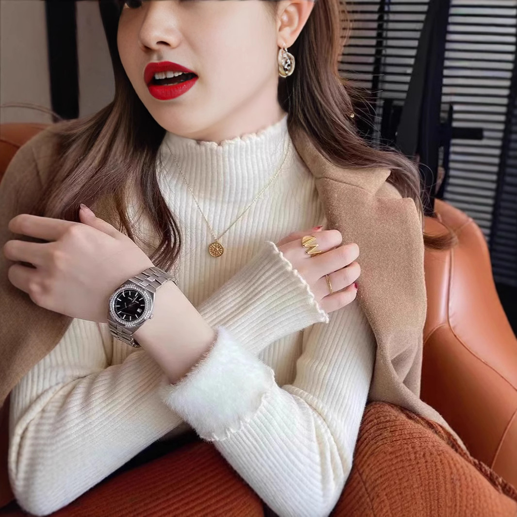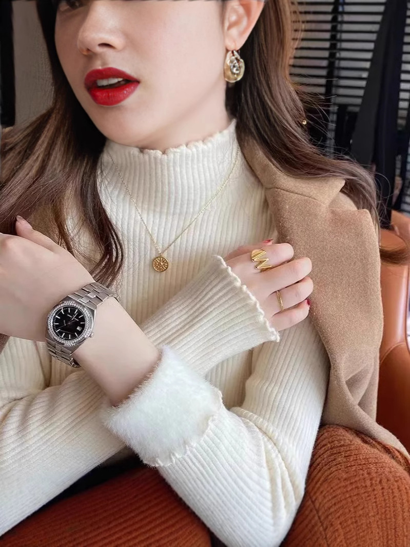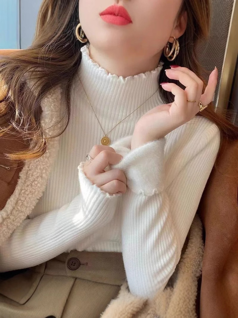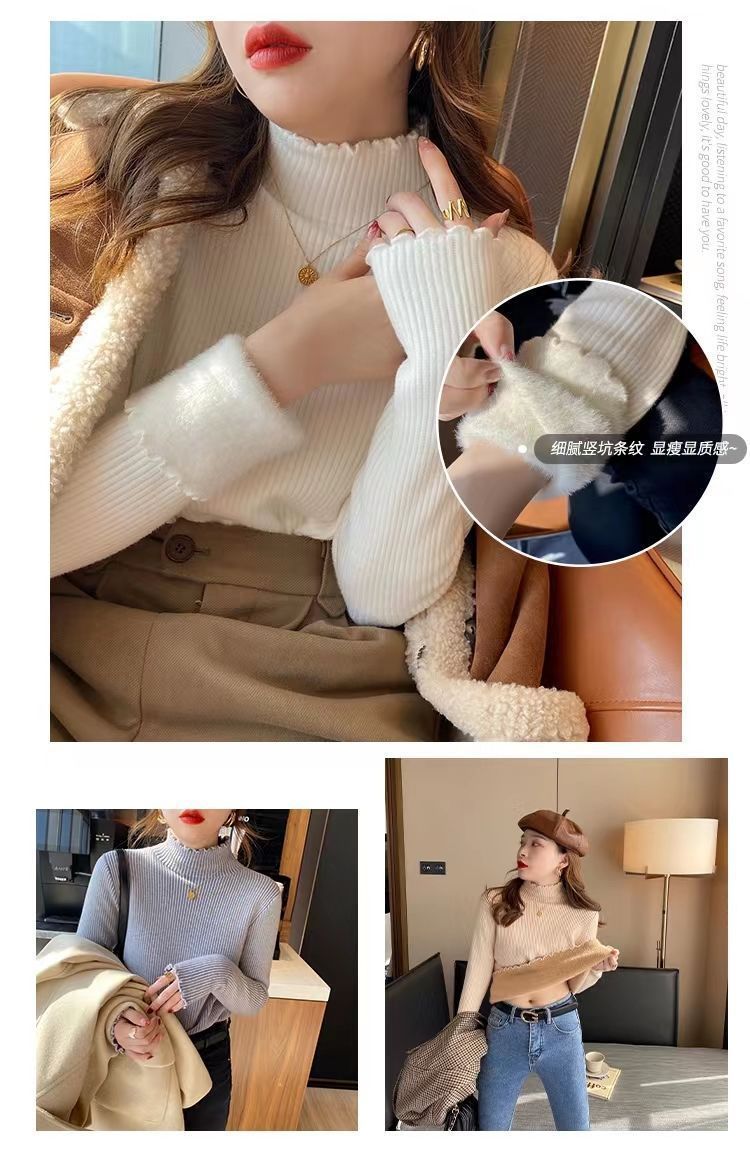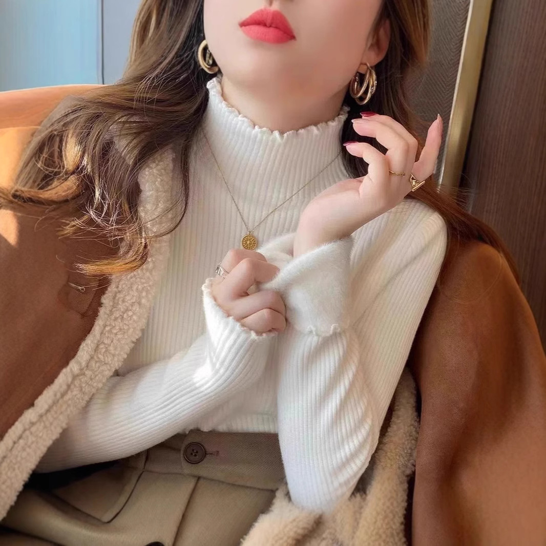 겨울 2024 새로운 폭발 여성 인테리어 원피스 벨벳 여성의 가을/겨울 슬림 핏 기모 두꺼운 미적 베이스 셔츠스토어 가기