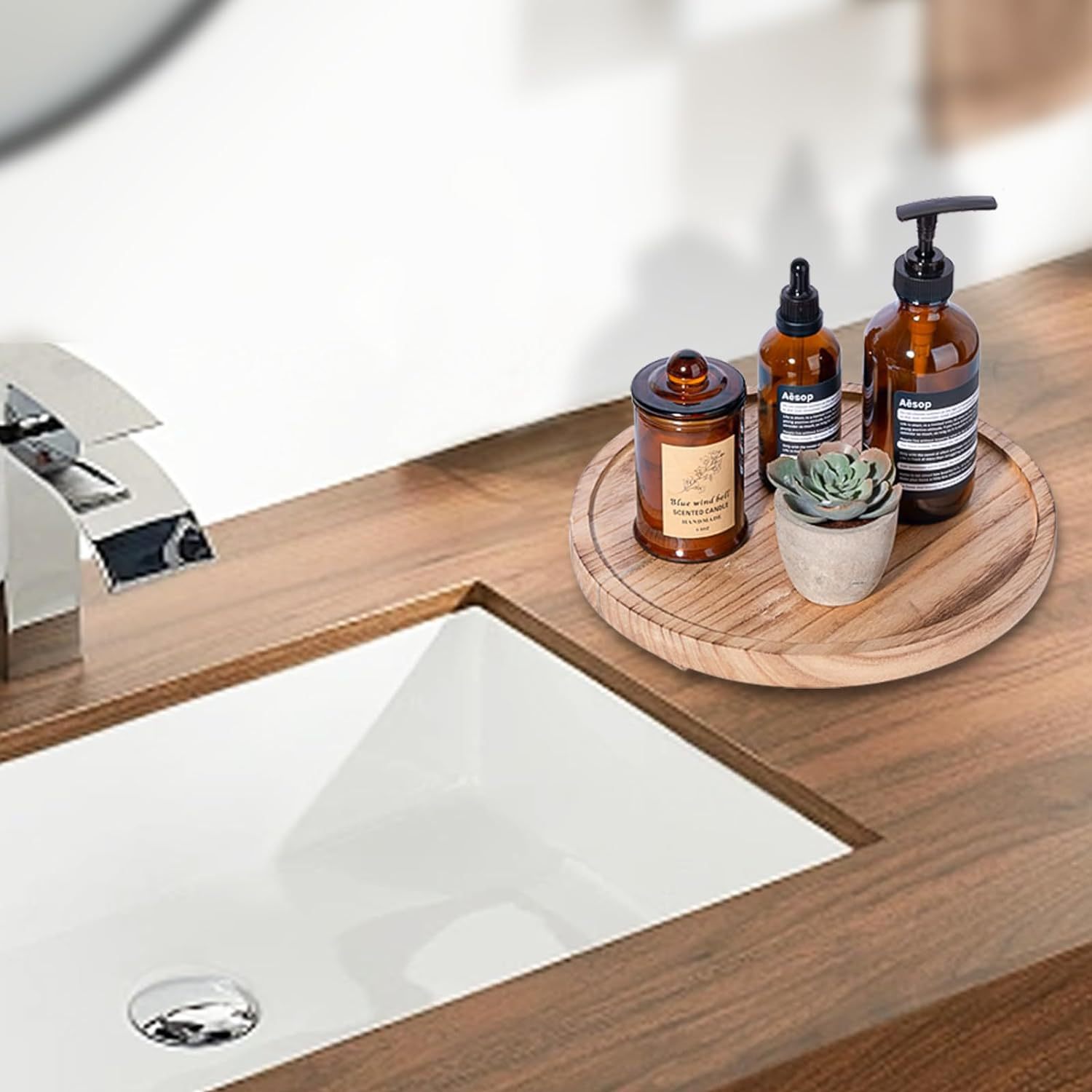 단단한 나무 둥근 장식 트레이 다육 질 녹색 식물 저장 선반 화장실 침실 아로마 테라피 에센셜 오일 저장 디스플레이 랙