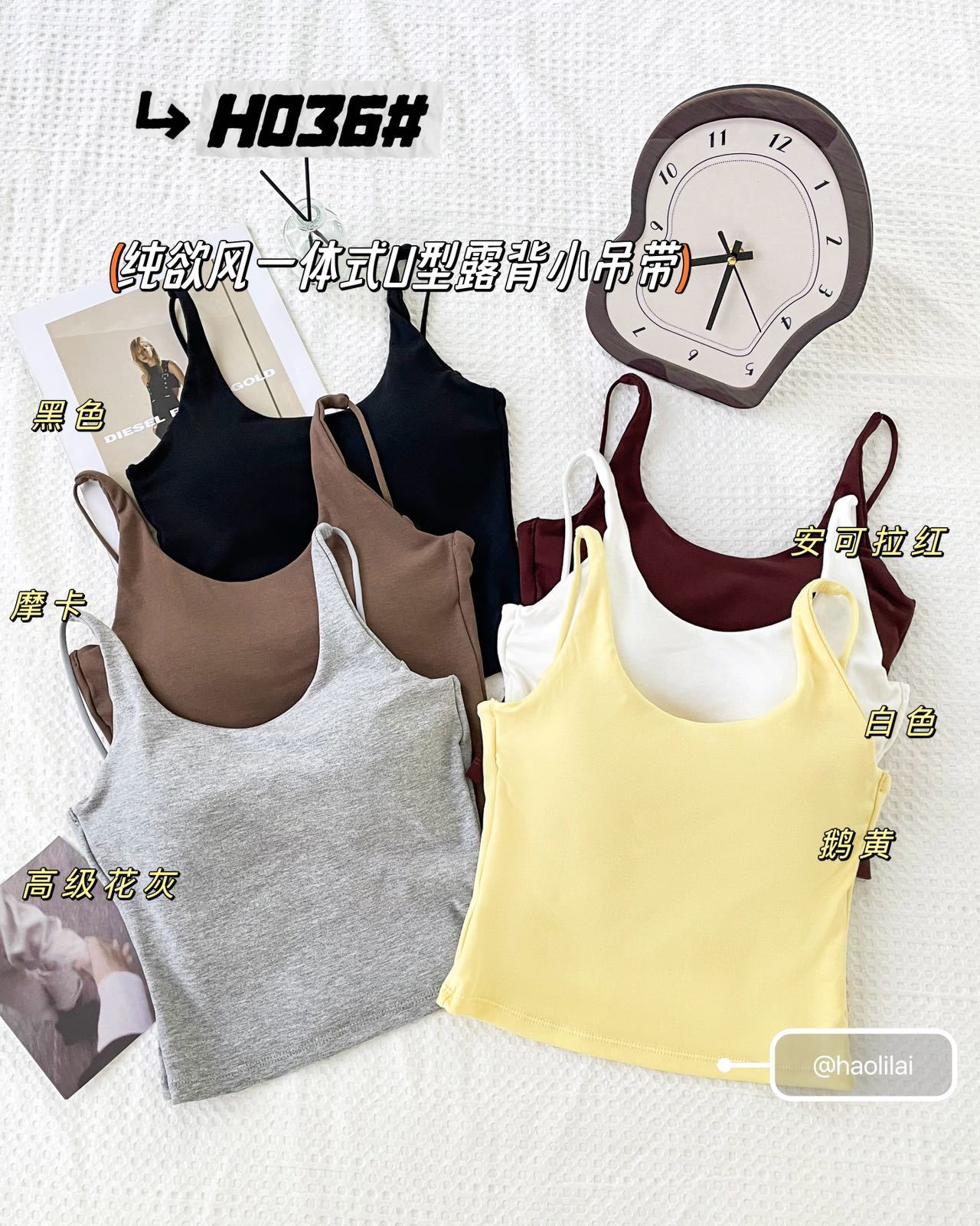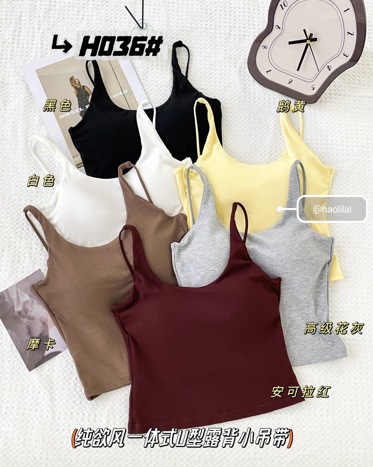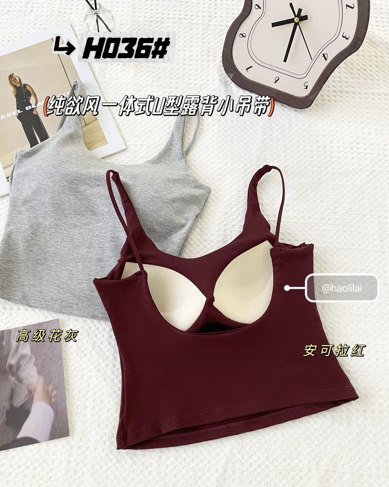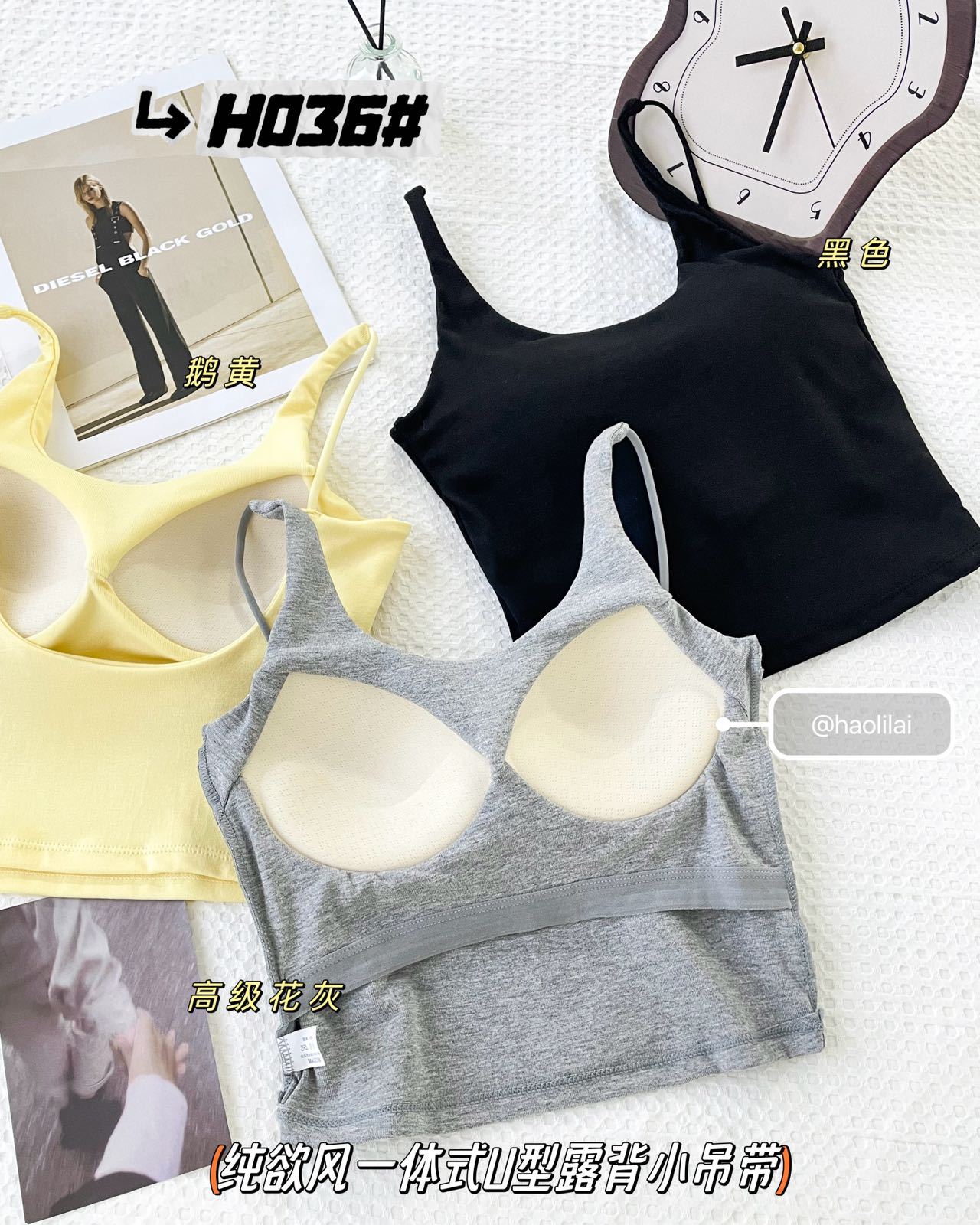 H036 # 이른 봄 새로운면 캐미솔 통합 U 자형 등이없는 고정 가슴 패드는 외부에 착용하고 내부에 내장 할 수 있습니다.