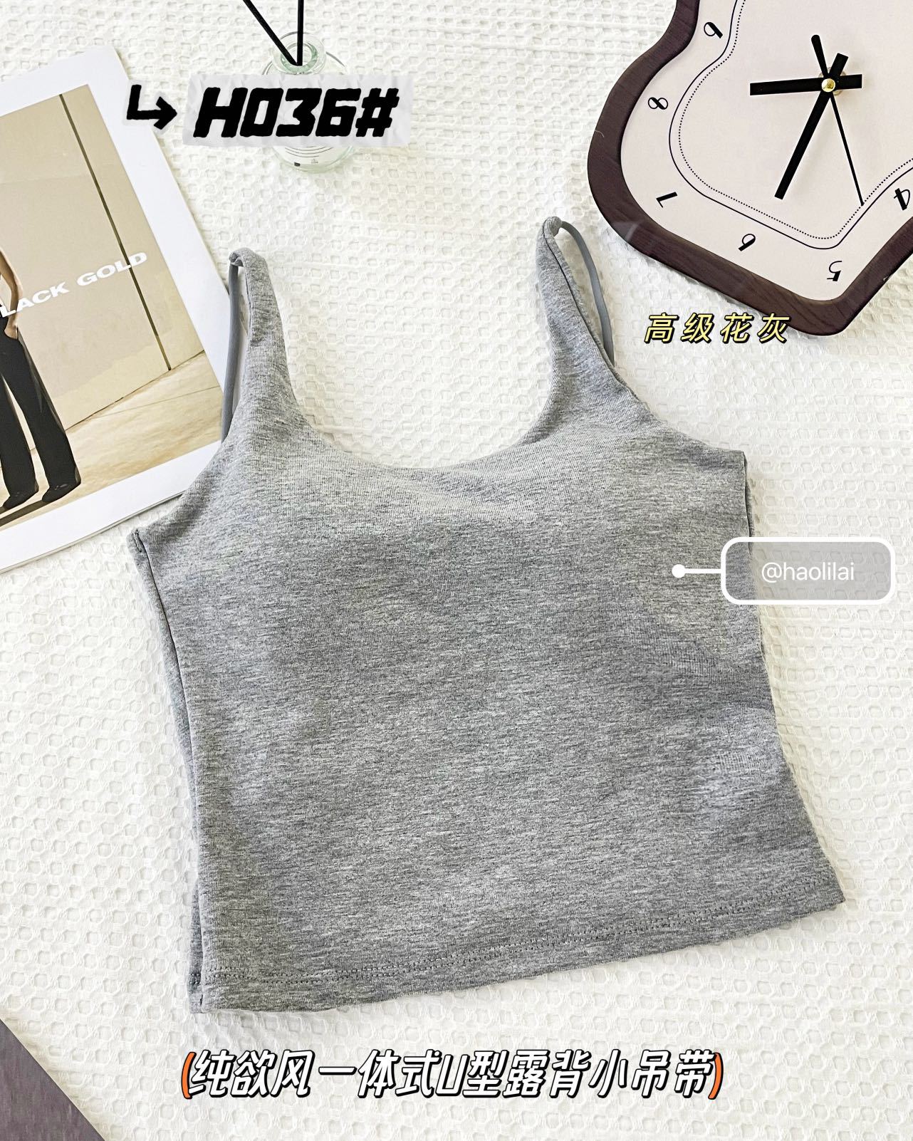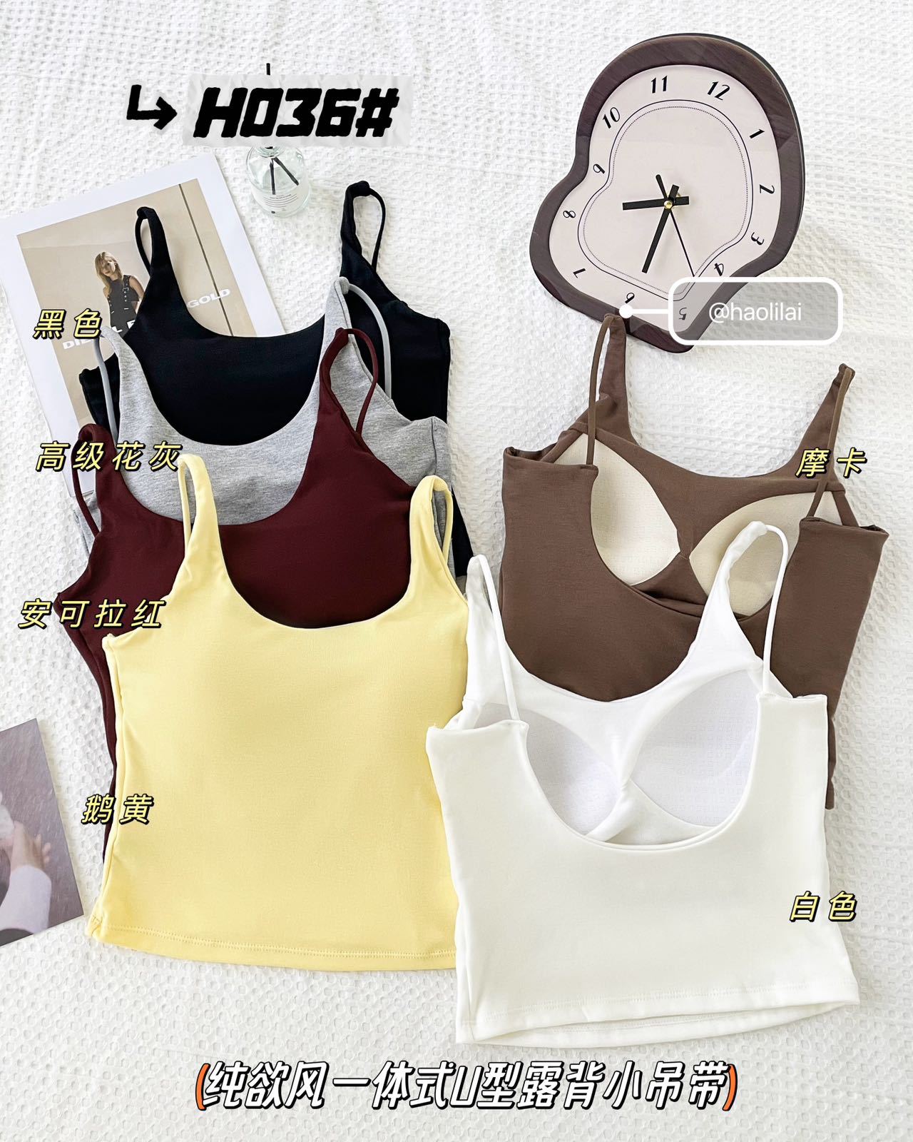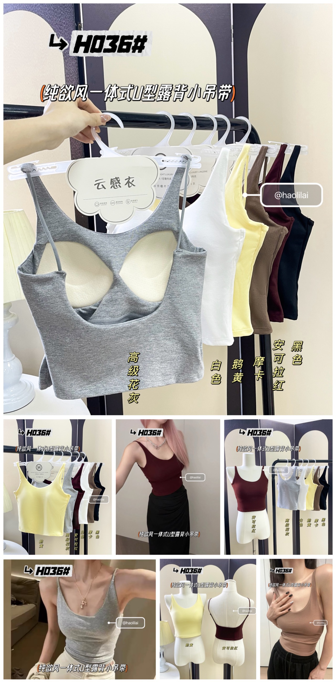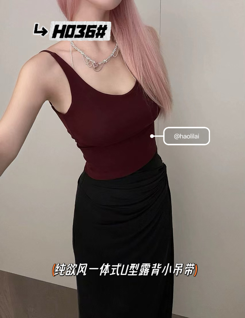 H036 # 이른 봄 새로운면 캐미솔 통합 U 자형 등이없는 고정 가슴 패드는 외부에 착용하고 내부에 내장 할 수 있습니다.스토어 가기