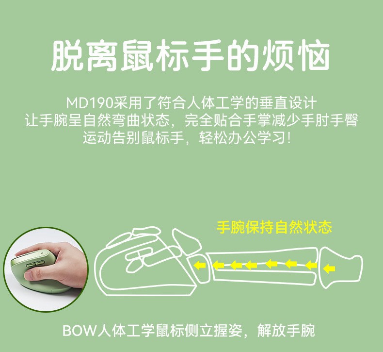 B. O.W 항시 인체 공학적 수직 듀얼 모드 마우스 무선 블루투스 USB 충전 음소거 소녀 소스 공장스토어 가기