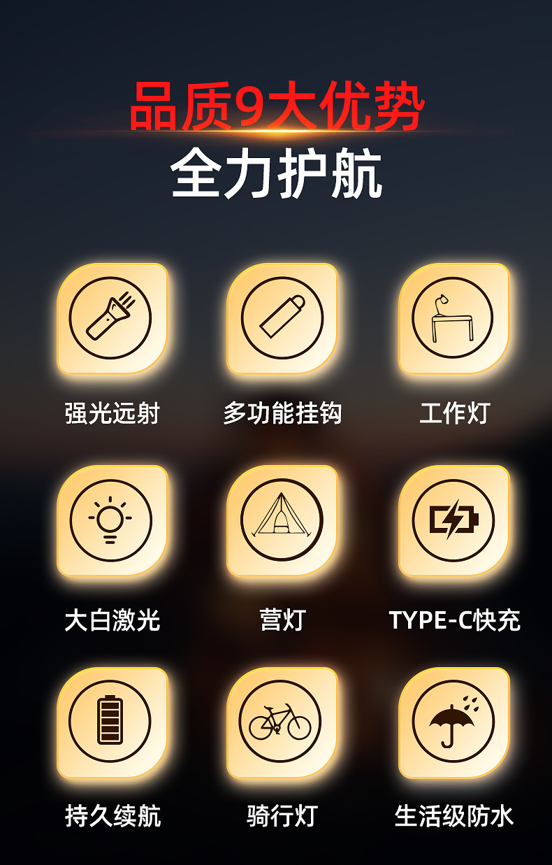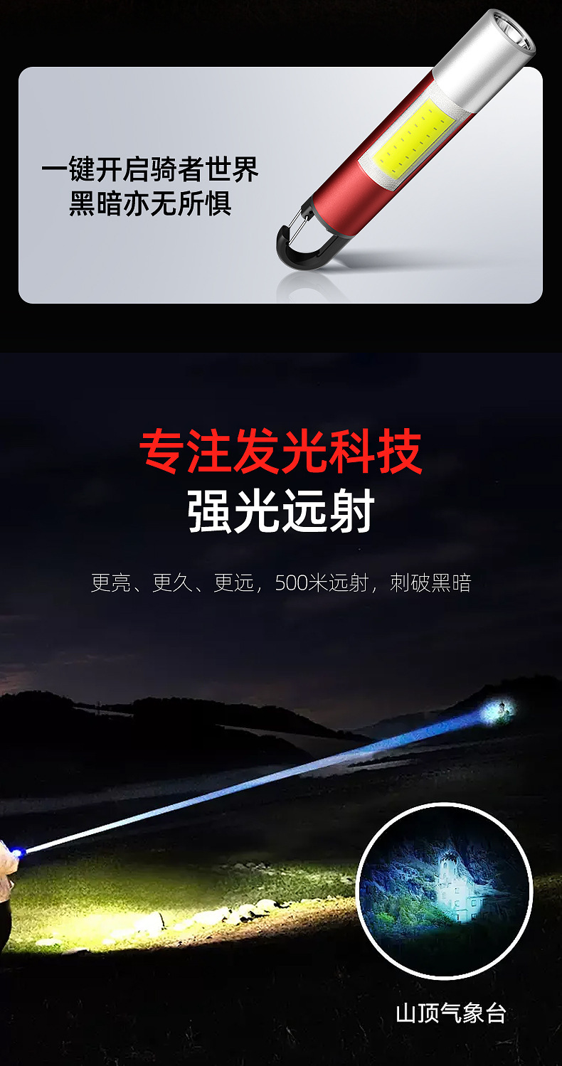 국경 새로운 손전등 야외 다기능 캠핑 조명 손전등 휴대용 작업 측면 손전등스토어 가기