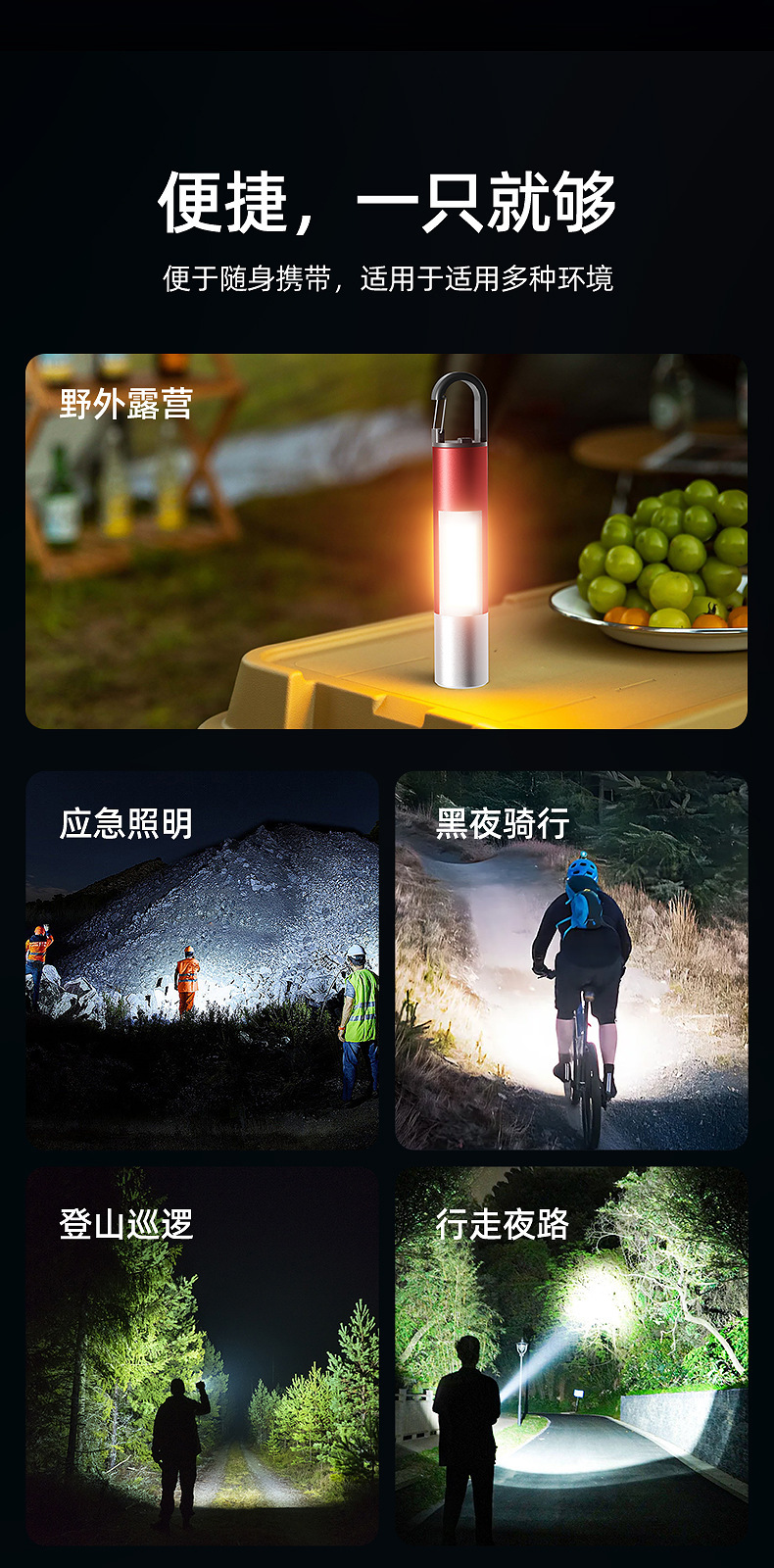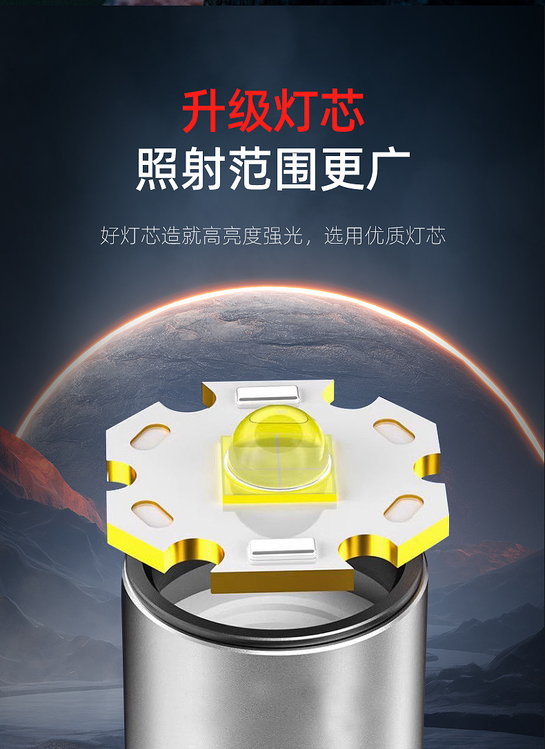 국경 새로운 손전등 야외 다기능 캠핑 조명 손전등 휴대용 작업 측면 손전등