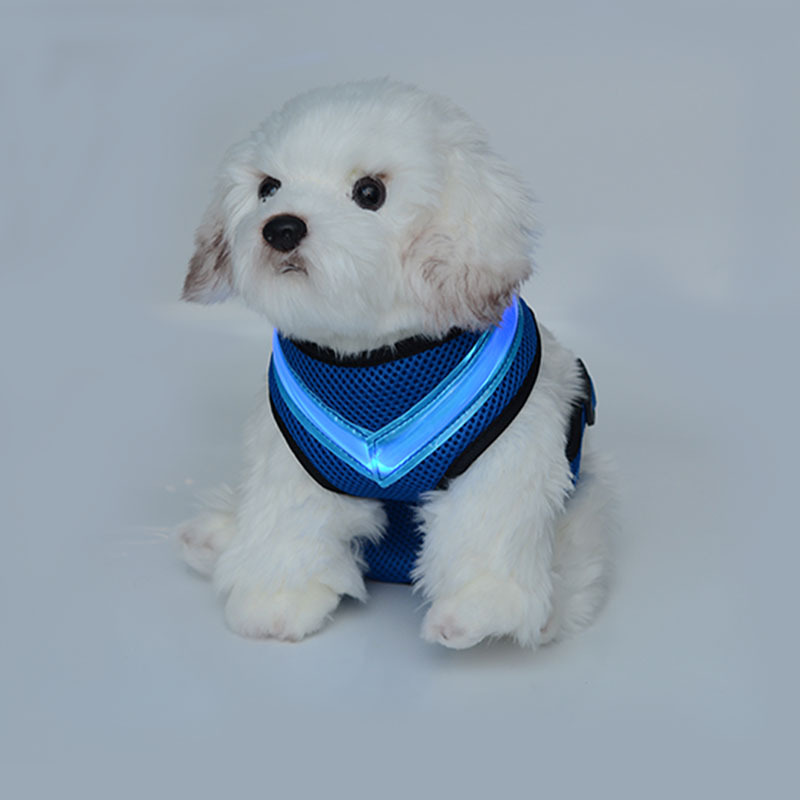 애완 동물 빛나는 하네스 개 하네스 LED 빛나는 USB 충전 반사 고양이 개 옷 통기성 메쉬 하네스