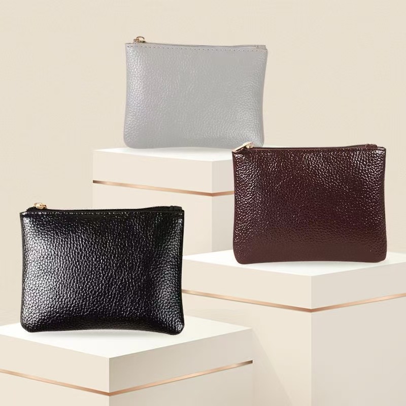 트렌디 한 새로운 경량 간단한 litchi 패턴 미니 동전 지갑 단색 PU 폴리 에스테르 섬유 패션 키 가방 도매스토어 가기