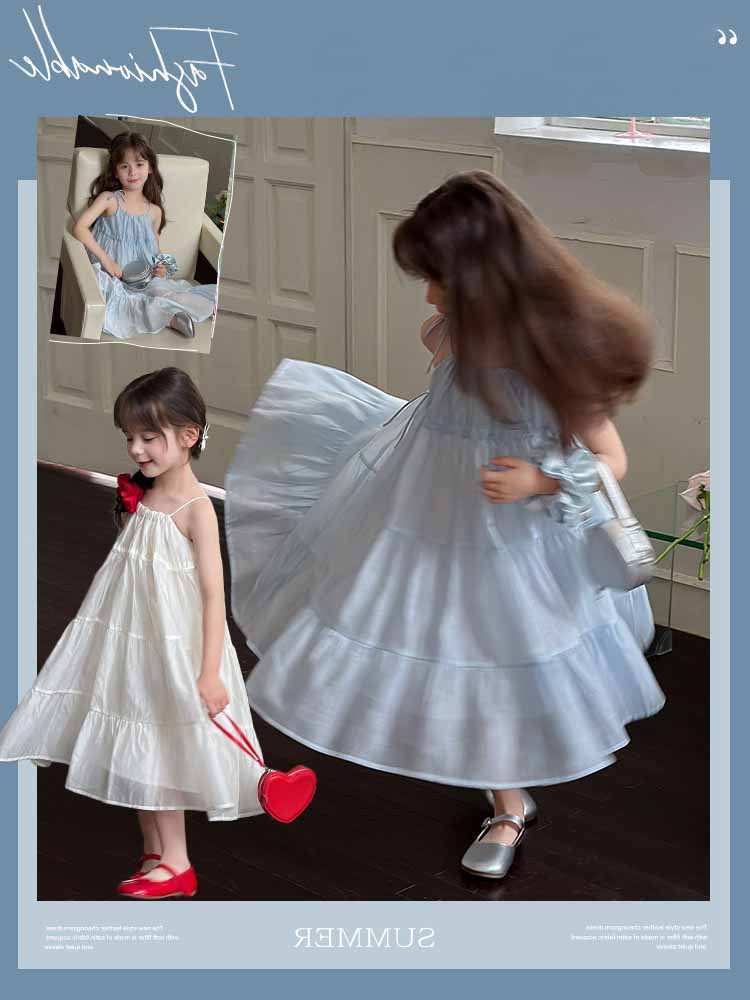 여자 원피스 여름 외국식 연꽃 잎 스트랩 비치 공주 스커트 어린이 헤어 세대의 새로운 한국어 버전