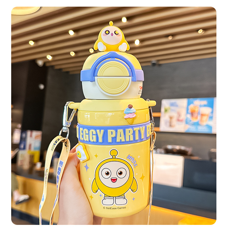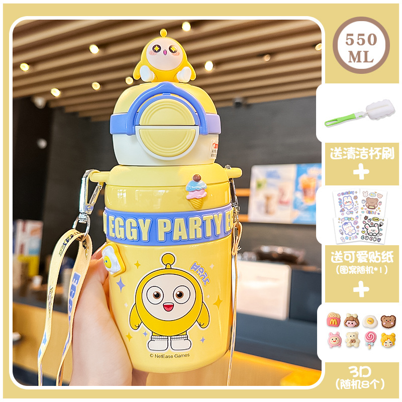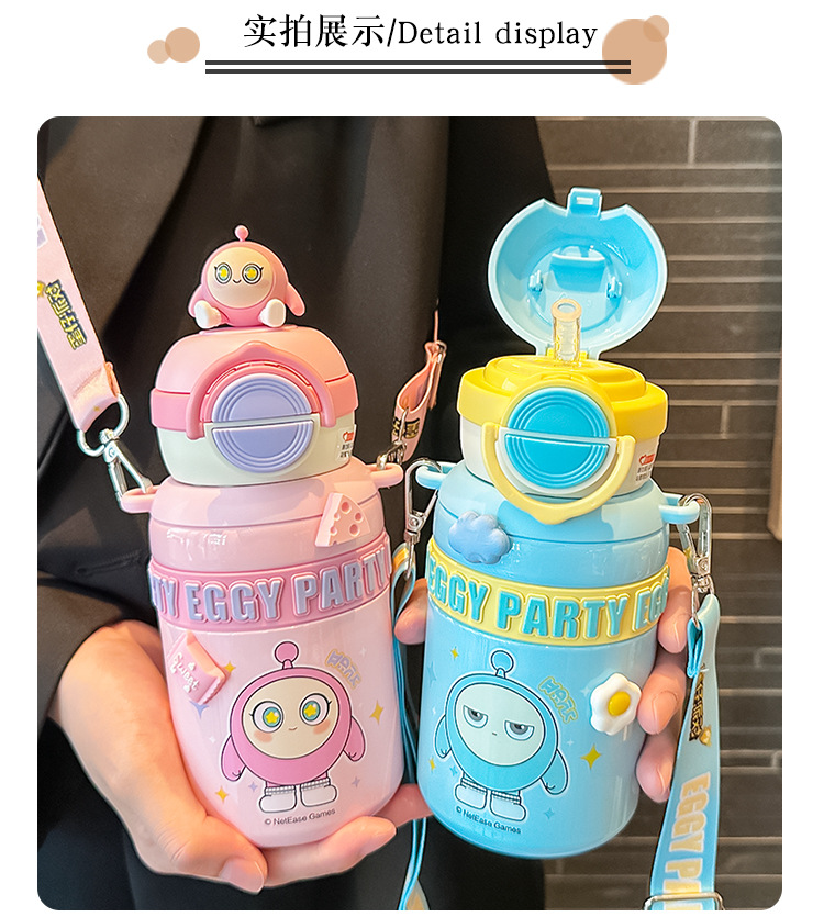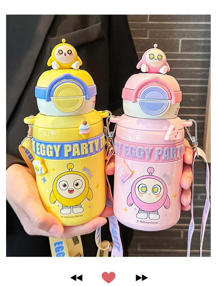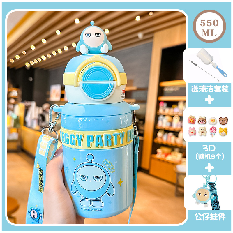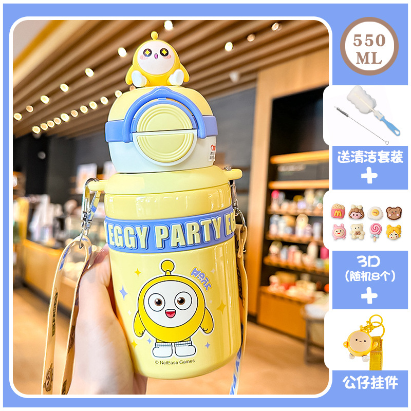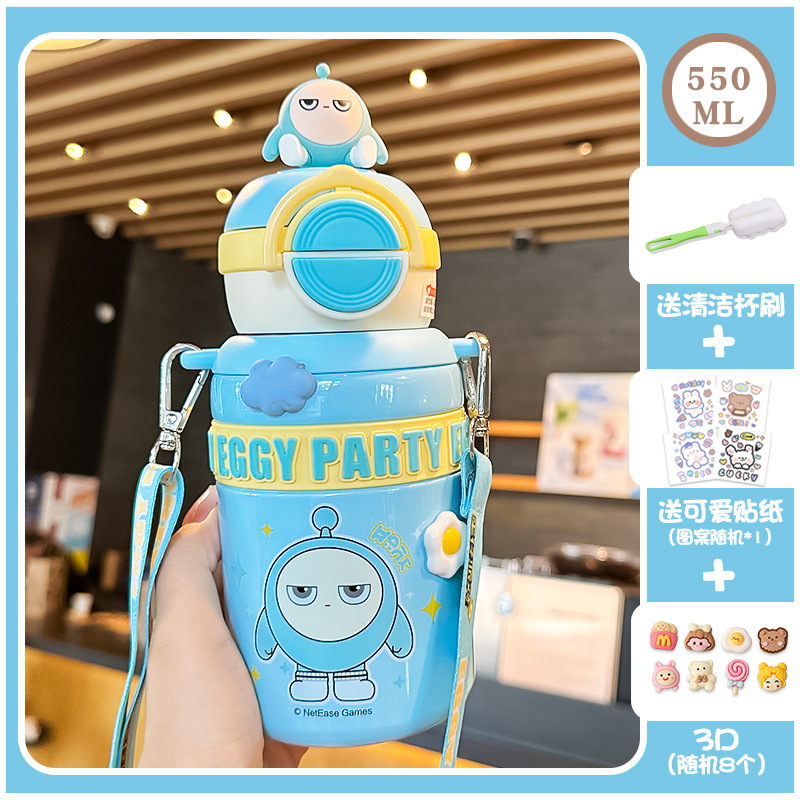계란 소년 파티 정품 인증 더블 음료 컵 만화 흡입 컵 어린이 탄성 커버 컵 휴대용 귀여운 보온병 컵