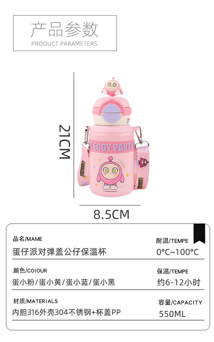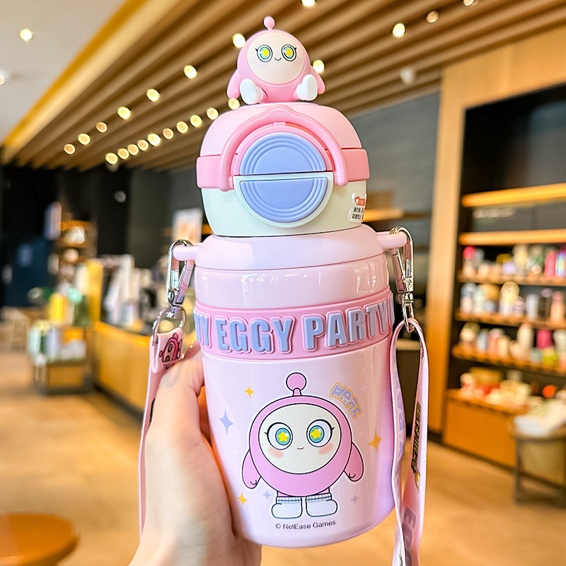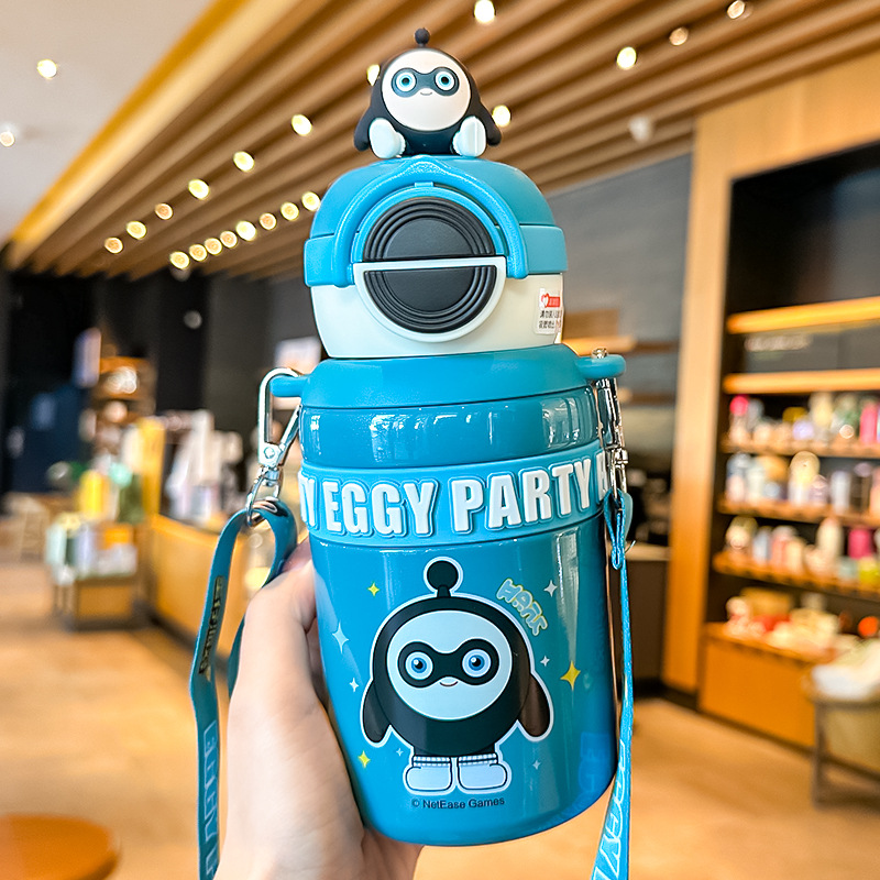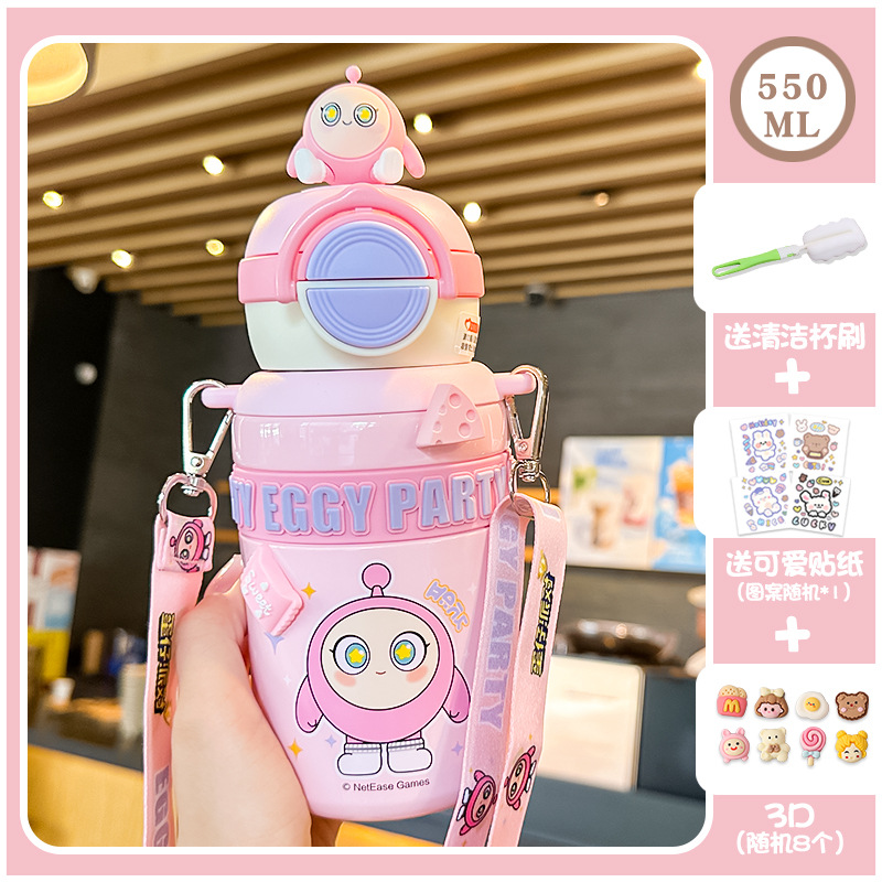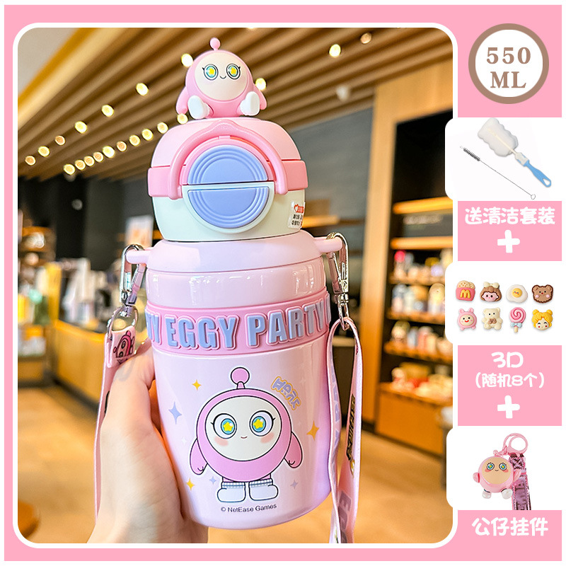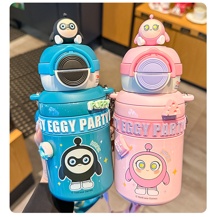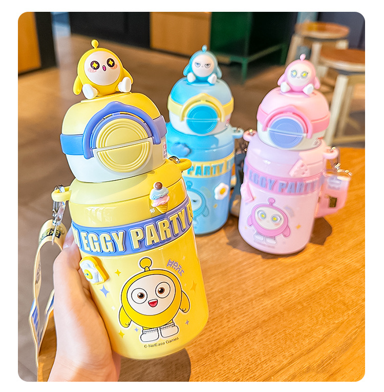 계란 소년 파티 정품 인증 더블 음료 컵 만화 흡입 컵 어린이 탄성 커버 컵 휴대용 귀여운 보온병 컵