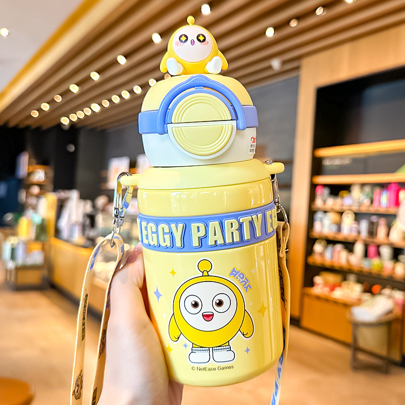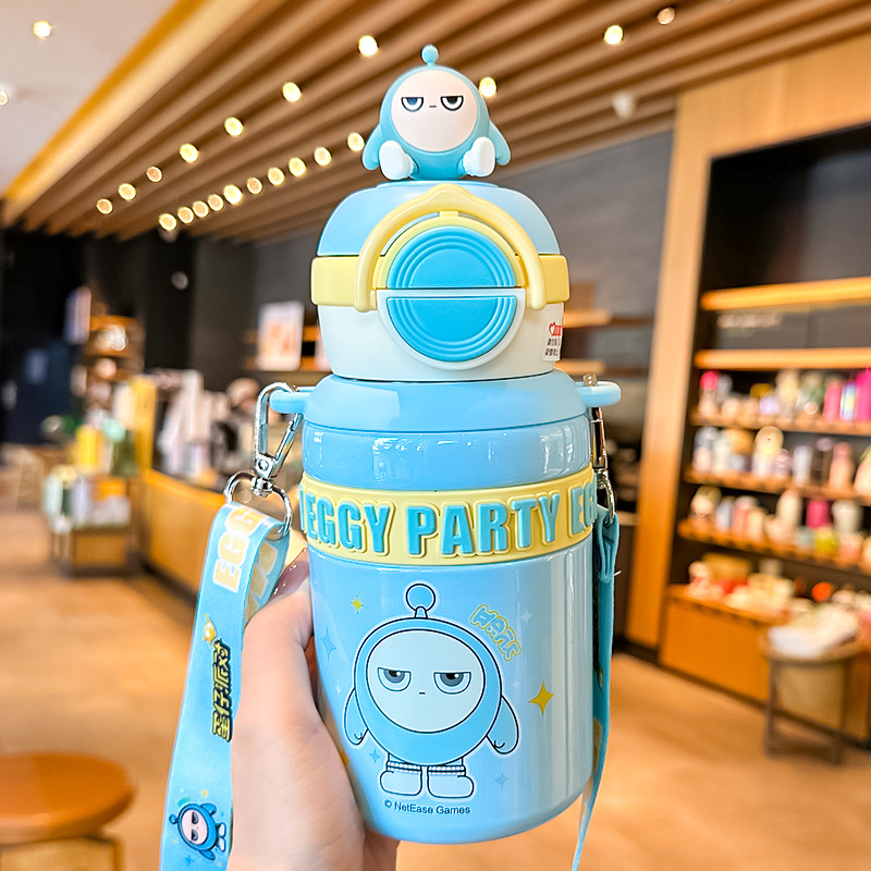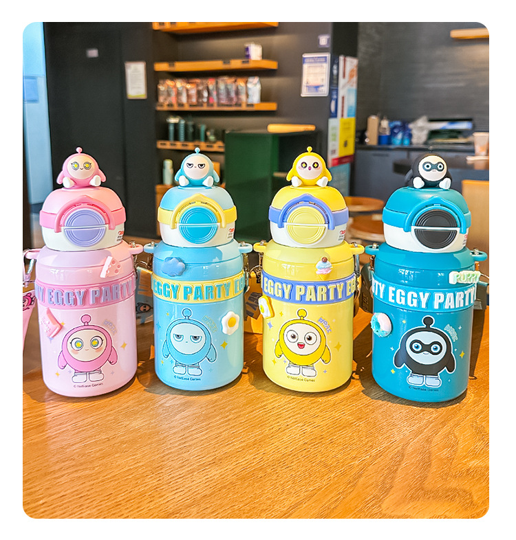 계란 소년 파티 정품 인증 더블 음료 컵 만화 흡입 컵 어린이 탄성 커버 컵 휴대용 귀여운 보온병 컵스토어 가기