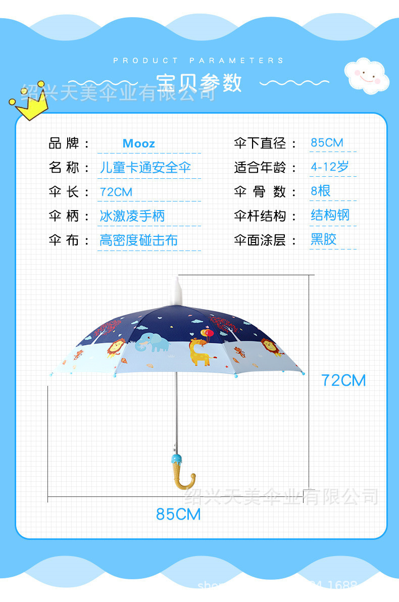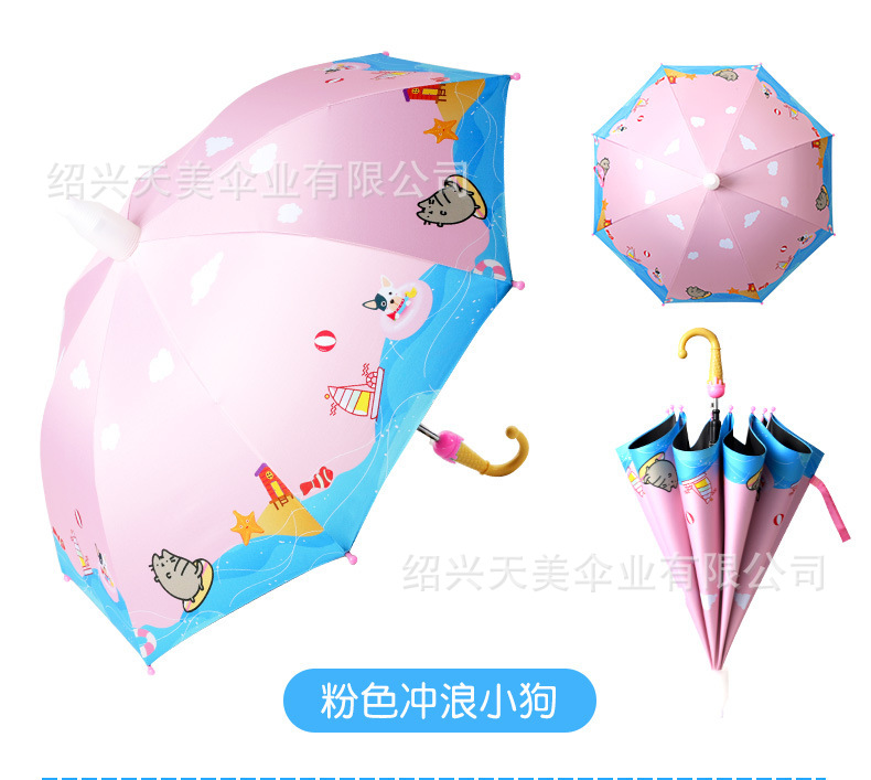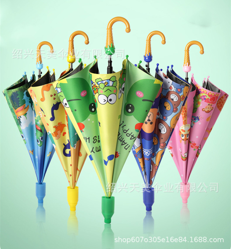 창조적 인 귀여운 만화 어린이 우산 로고 검은 고무 선 스크린과 비 우산 안전 어린이 우산