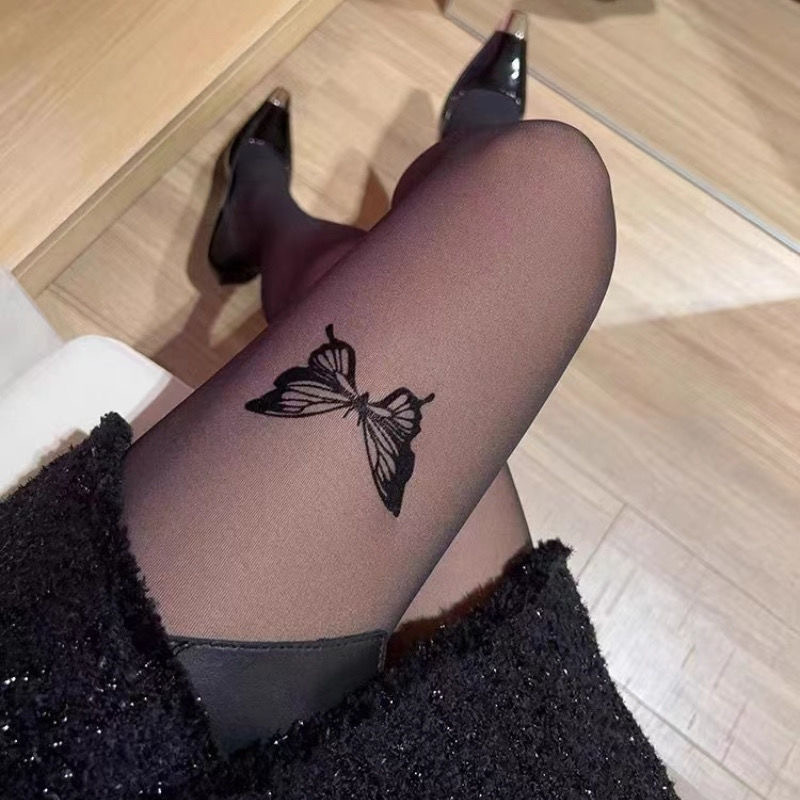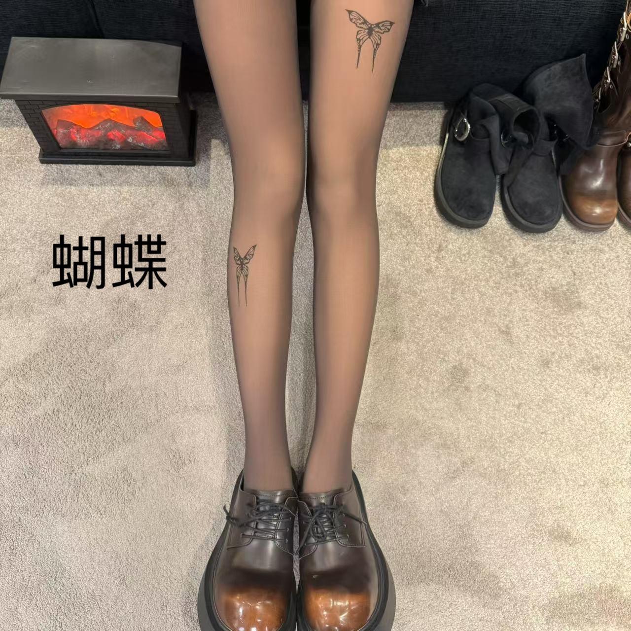 진실한 피부 80g 디 폭발 두꺼운 나비 인쇄 검은 스타킹 봄과 가을 웨이브 포인트 높은 빛 투과 다리 아티팩트 팬티 스타킹스토어 가기