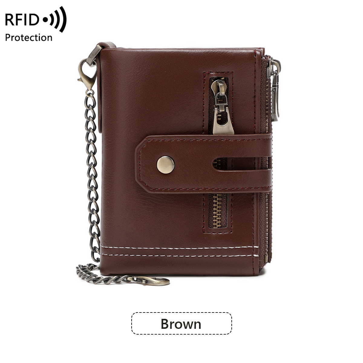 2026년 신형 RFID 도난방지 유럽 및 미국 남성용 지갑 부드러운 가죽 더블 지퍼 동전 지갑 70% off 짧은 스타일 지갑스토어 가기