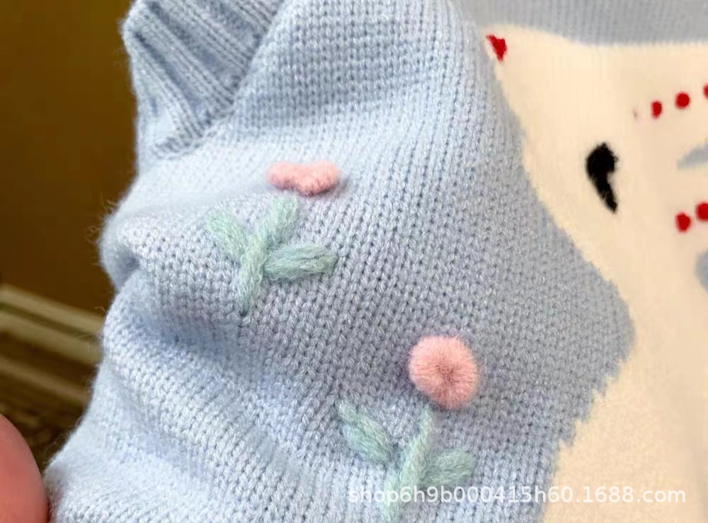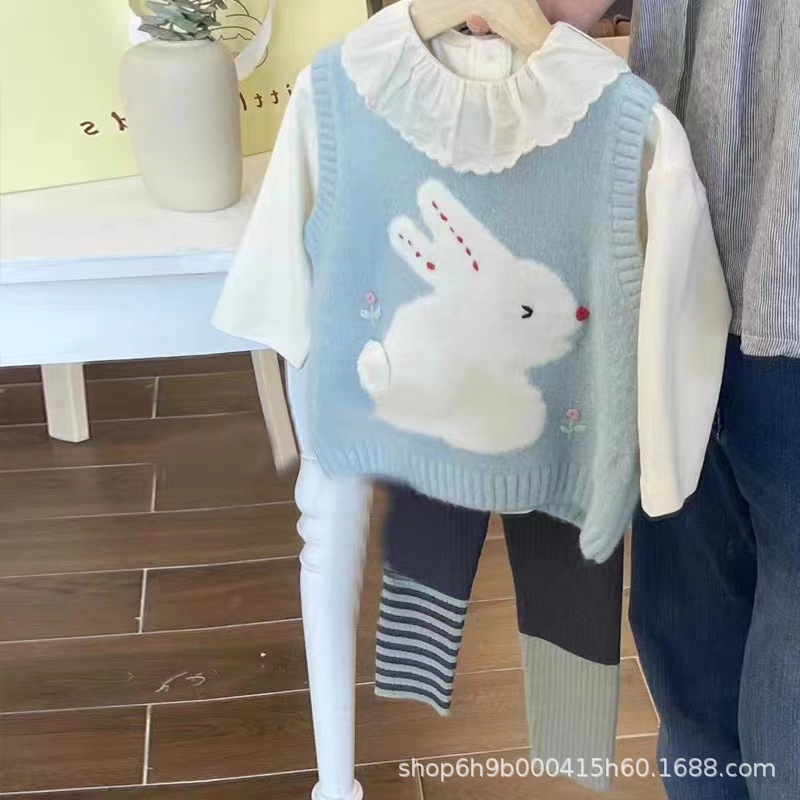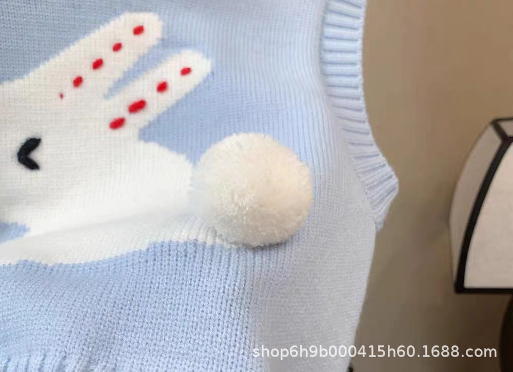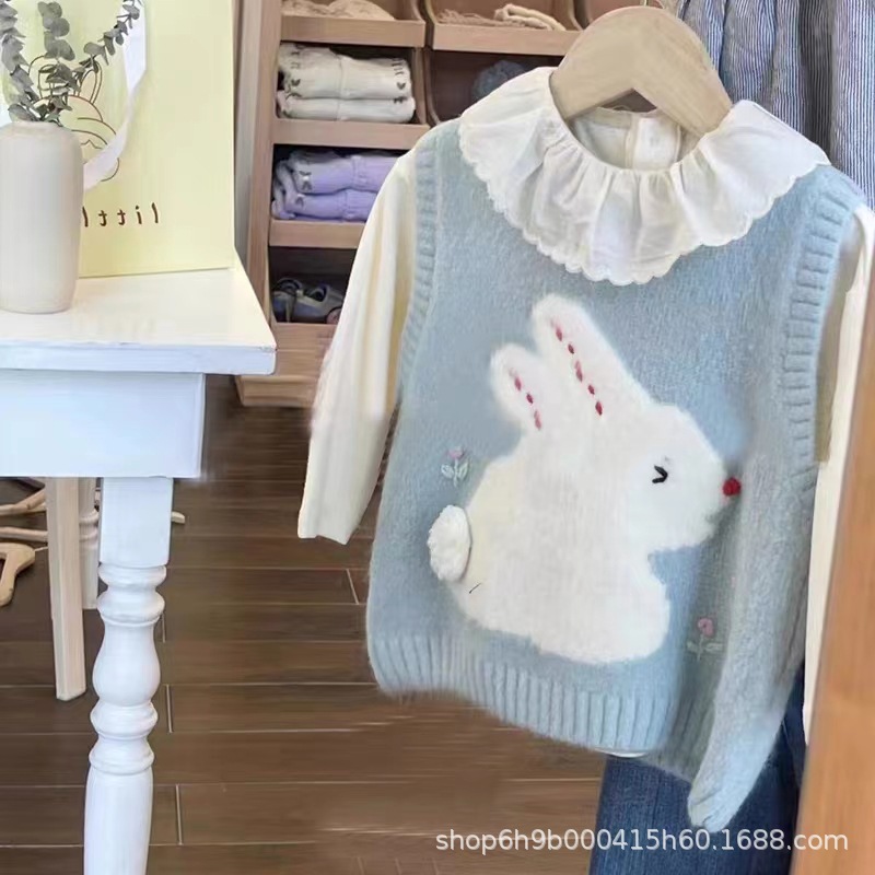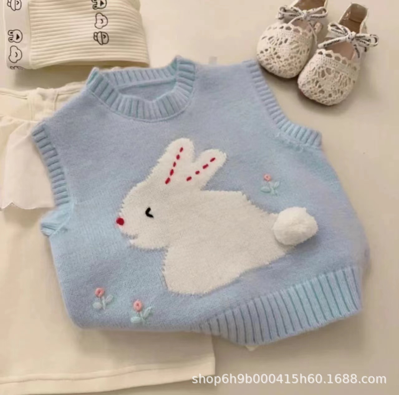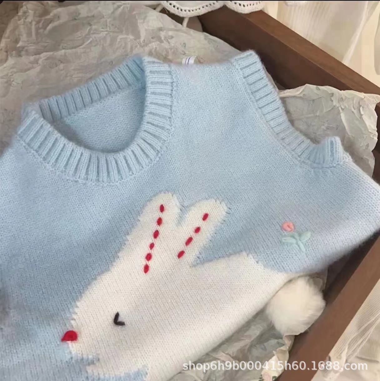 여자 니트 조끼 2023 새로운 한국 스타일 인터넷 인기있는 귀여운 푸른 토끼 만화 외부 스웨터 조끼스토어 가기