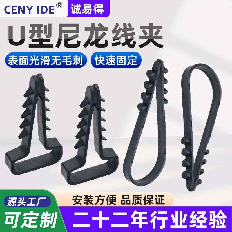 제조업체의 재고 도매 내마모성 U자형 케이블 클립, 플라스틱 타워 버클, 두꺼운 흑백 나일론 케이블 클립, 플라스틱 케이블 클립