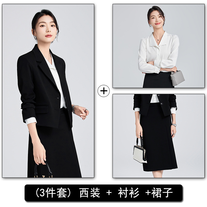 작은 세트 세트 무릎 중간 길이 원피스 여성 가을 겨울 작은 남자 경력 인터뷰 원피스 통근 직장 기질 세트스토어 가기