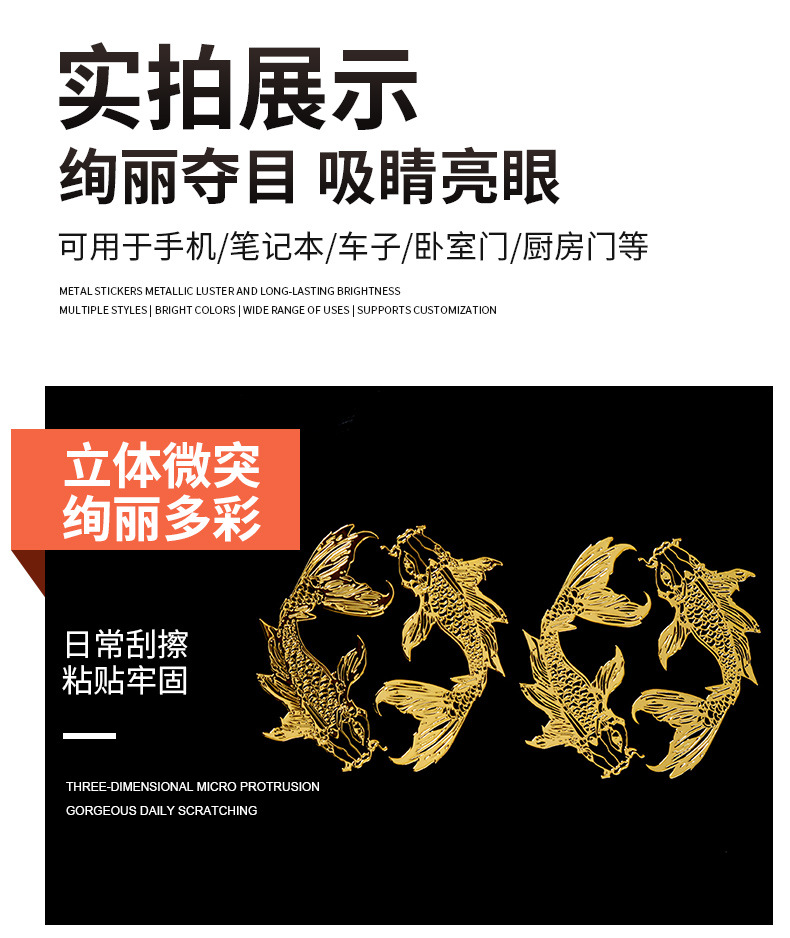 금속 스티커 용과 잉어 2024 태수운 금속 스티커 자동차 사무실 책상 문 스티커 금속 스티커 접착식스토어 가기
