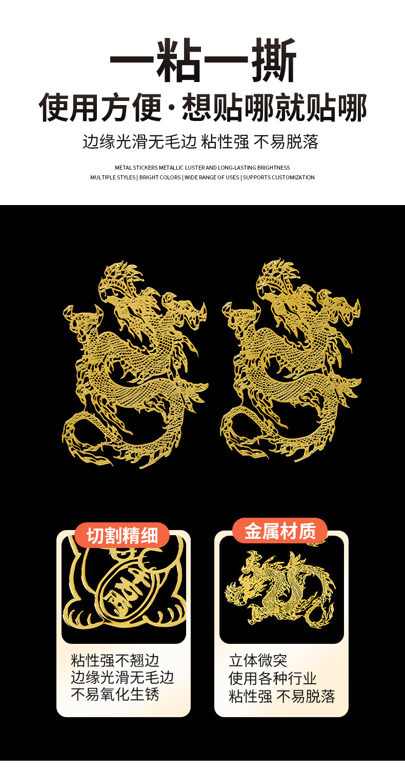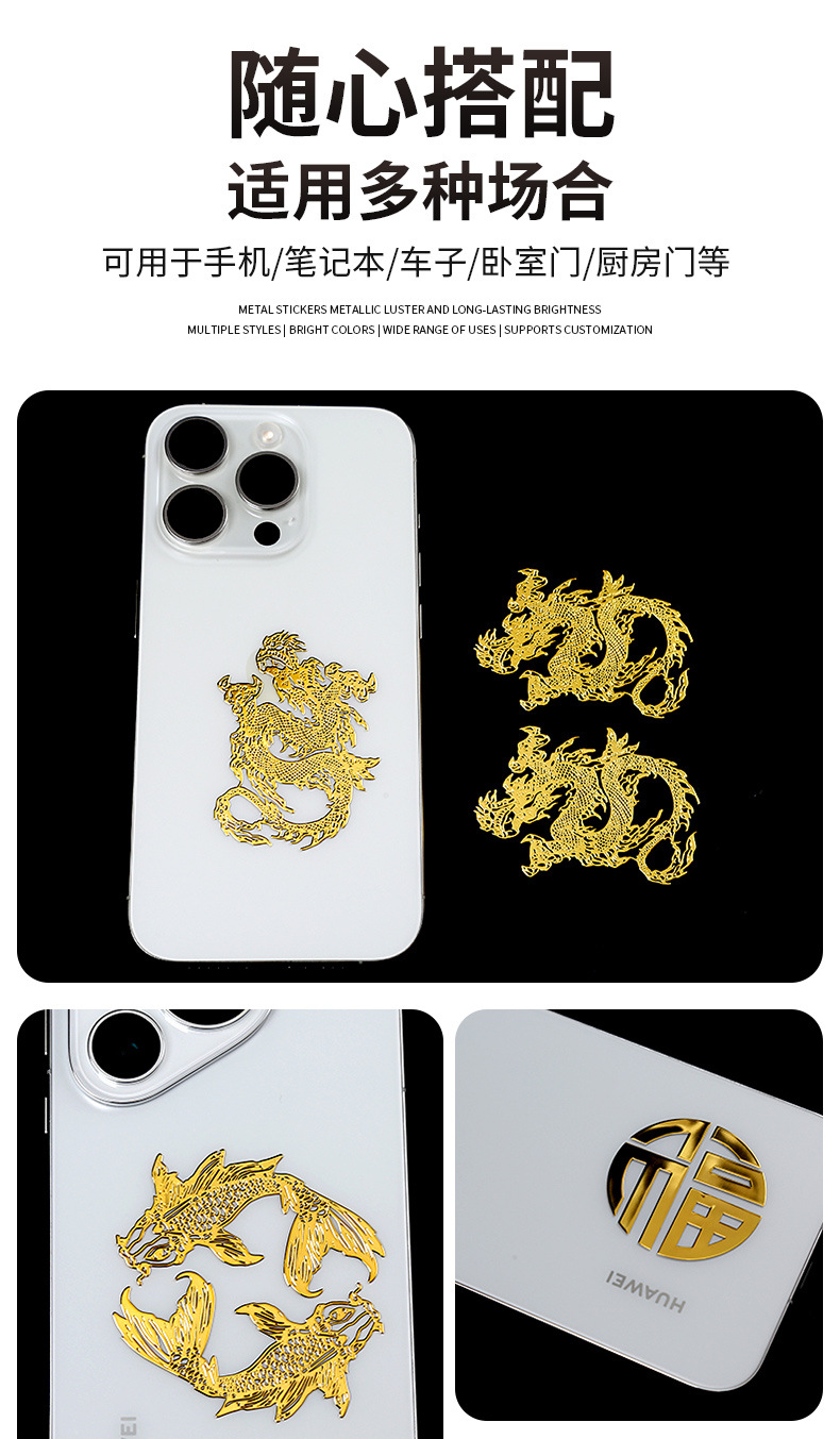 금속 스티커 용과 잉어 2024 태수운 금속 스티커 자동차 사무실 책상 문 스티커 금속 스티커 접착식
