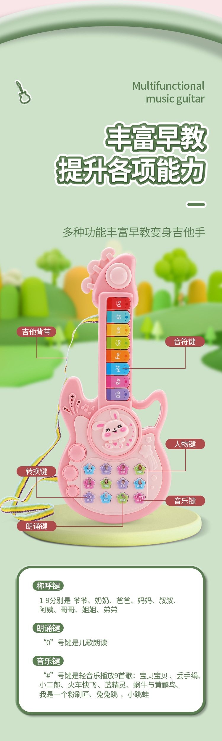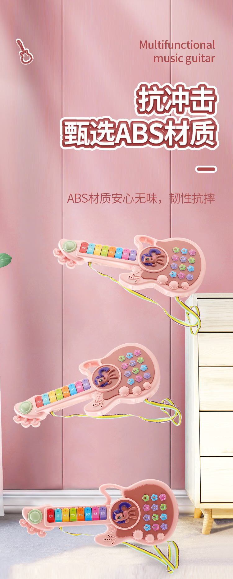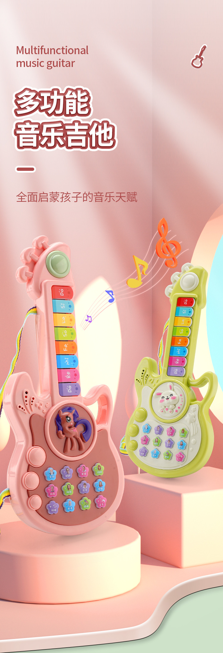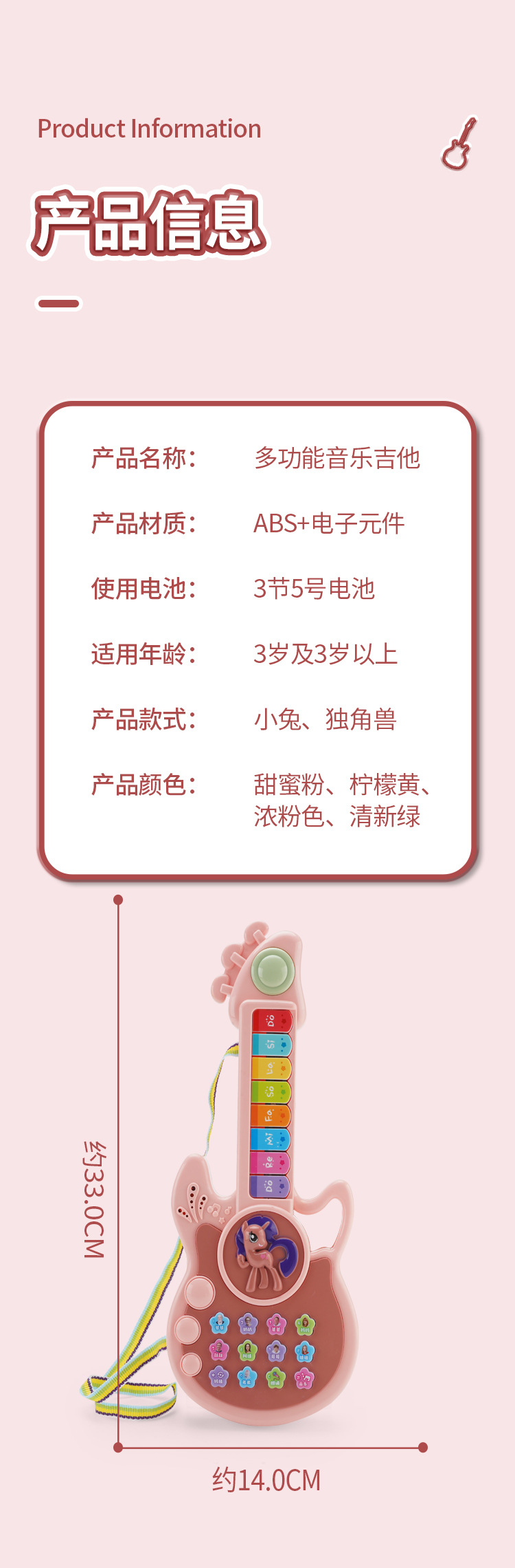 • 소형 [귀여운 토끼-라이트 핑크] 조기 교육 음악 기타