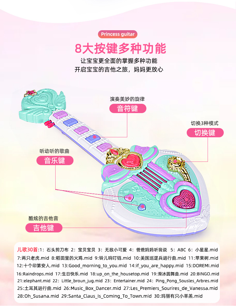 새로운 어린이 음악 기타 조기 교육 장난감 피아노는 계몽 악기를 연주 할 수 있습니다 다기능 전자 피아노 장난감 도매