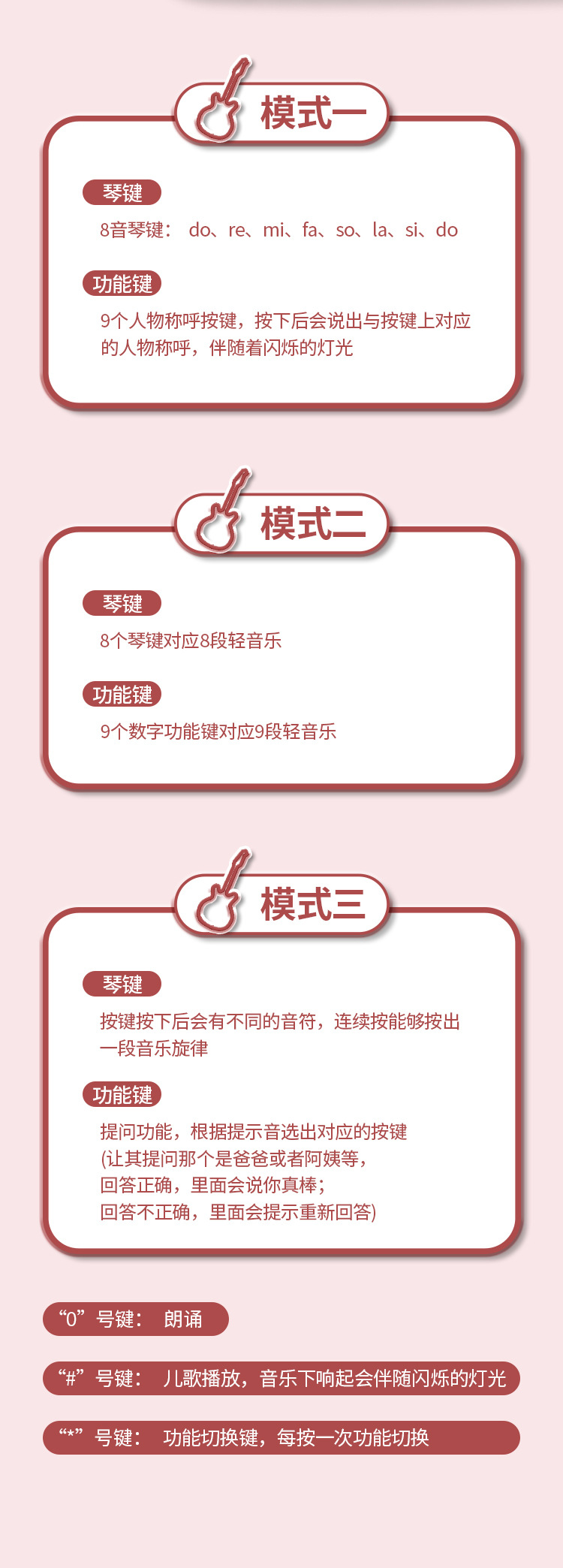 • 대형 [핑크] 중국어 및 영어 다기능 기타(휴대용 선물 상자)
