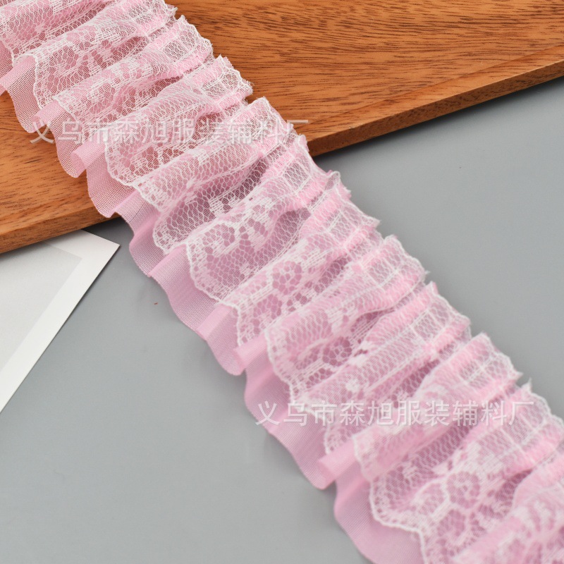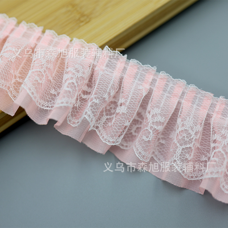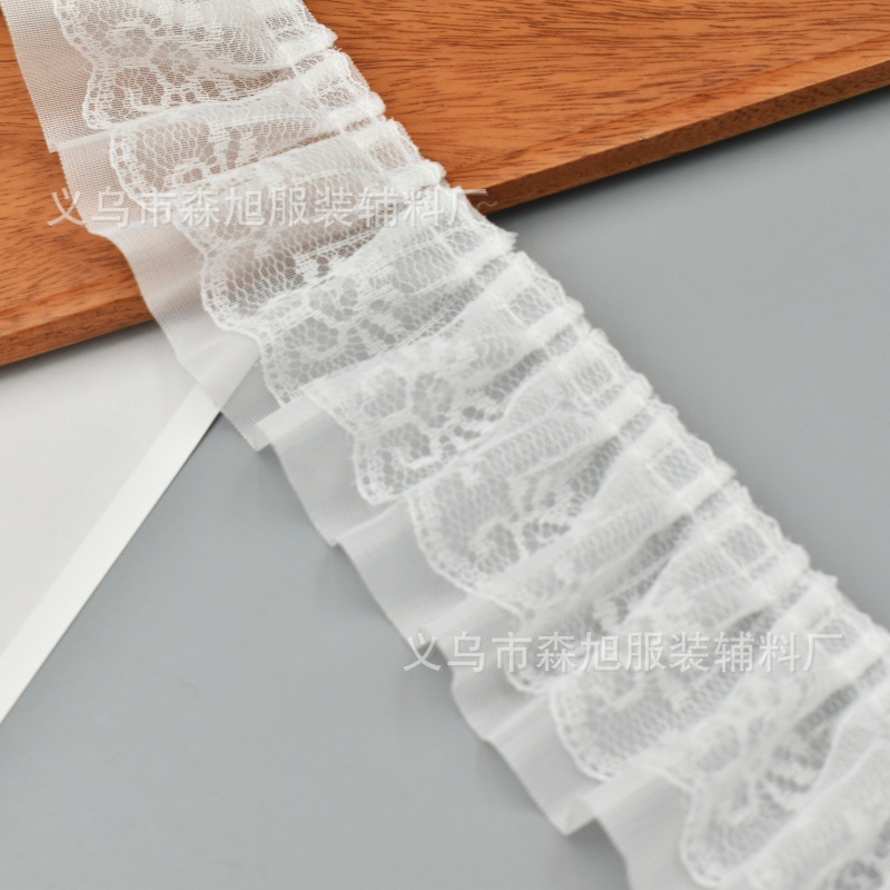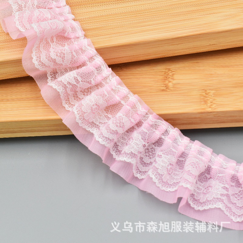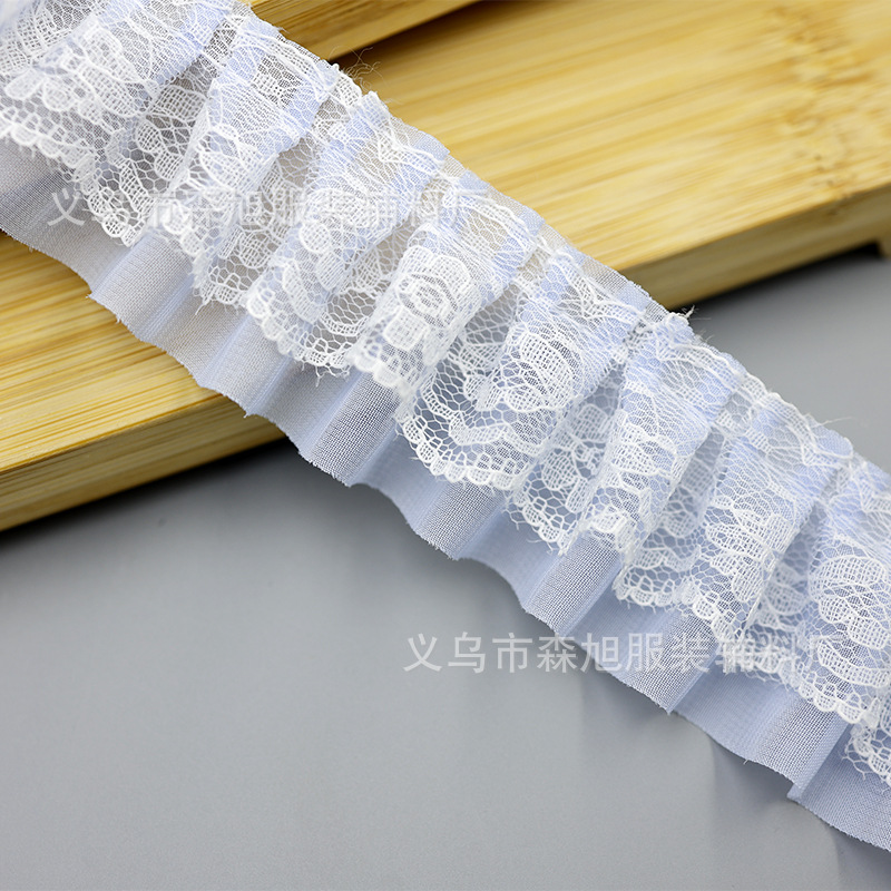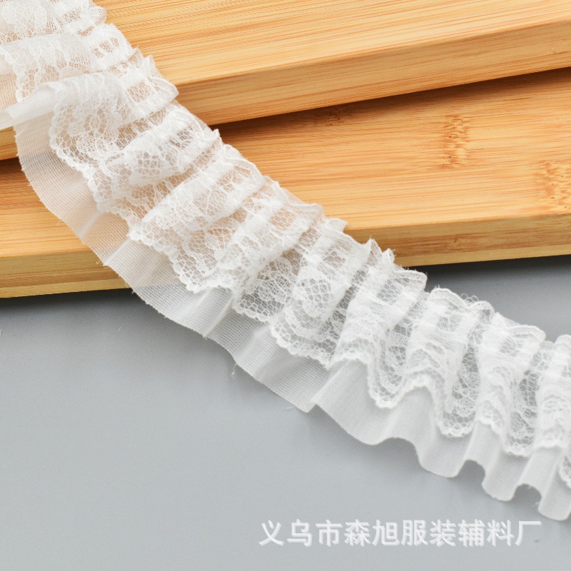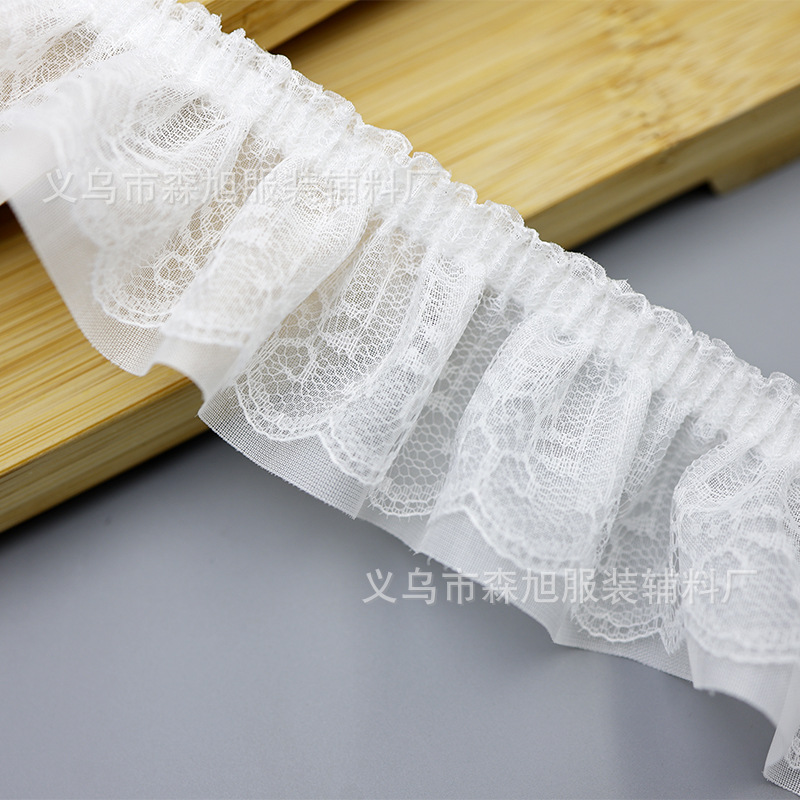재고 5cm 더블 주름 쉬폰 레이스 DIY 의류 액세서리 도매 할인 레이스스토어 가기