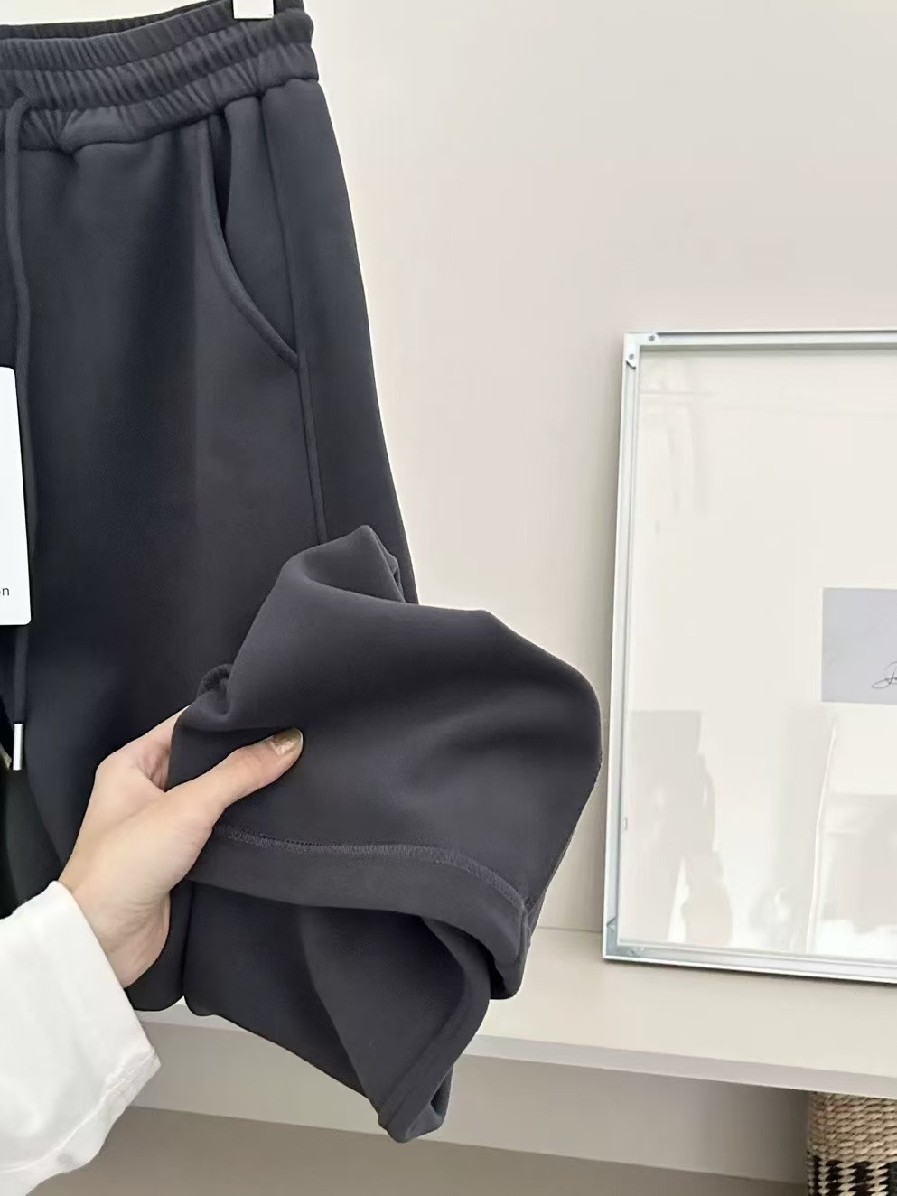 2025년 신상 루가의 투웨이 스트레이트 와이드 레그 방풍 바지 자수 끈 조임 따뜻하고 두꺼운 여성용 다용도 슬림핏 겨울용스토어 가기