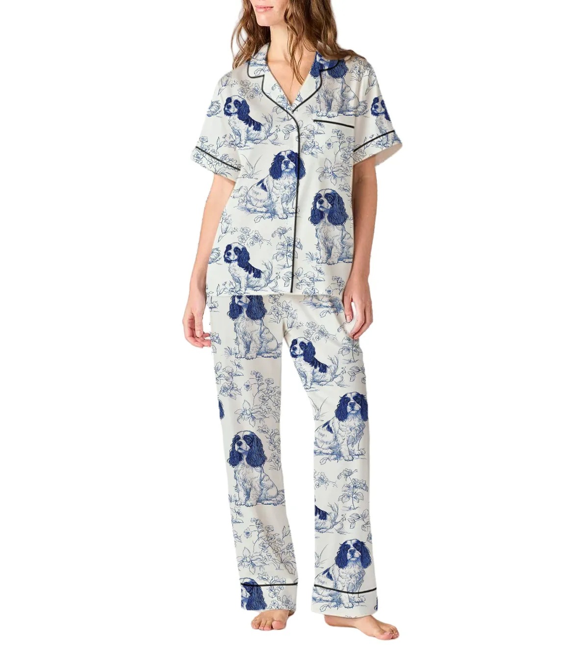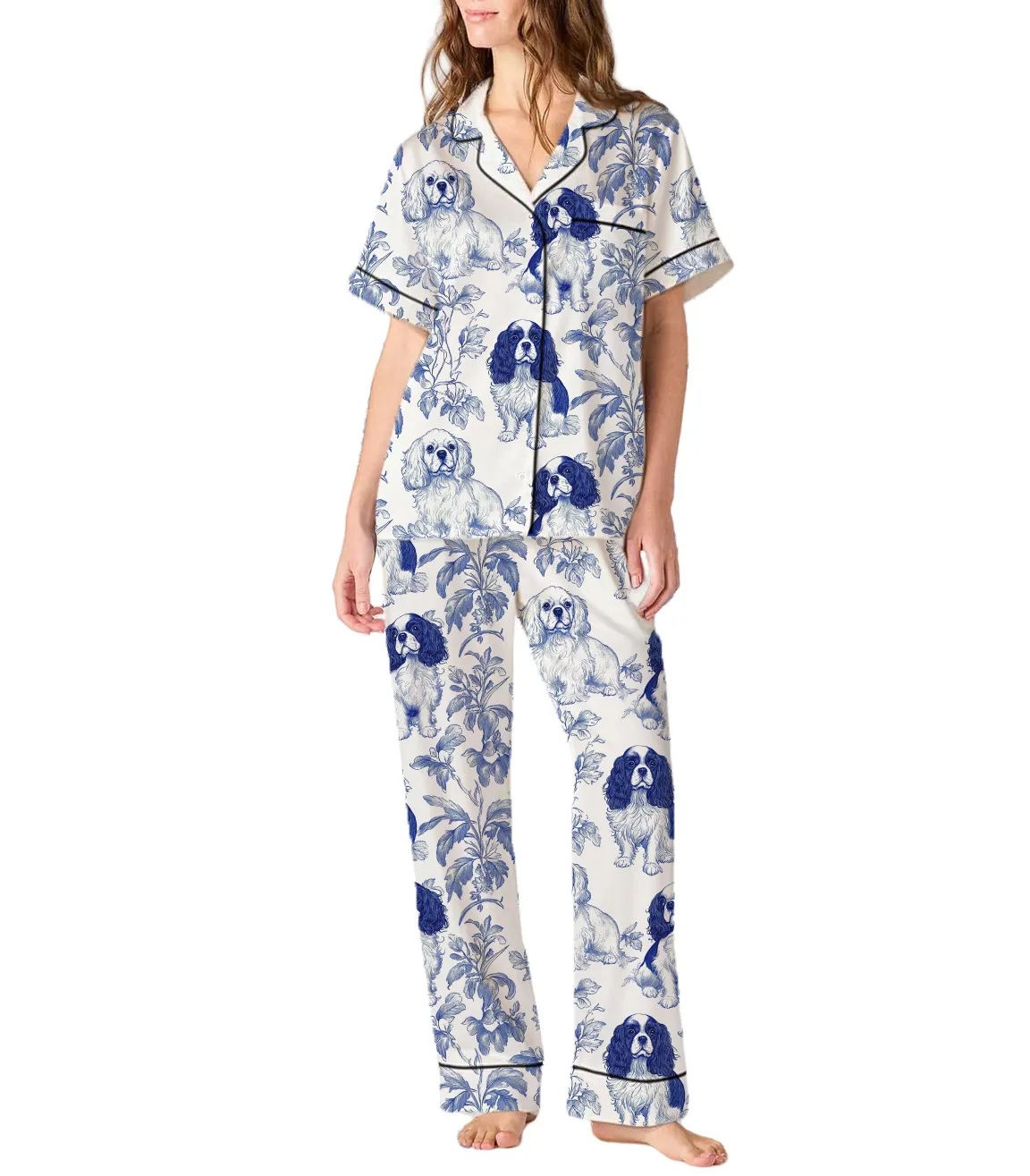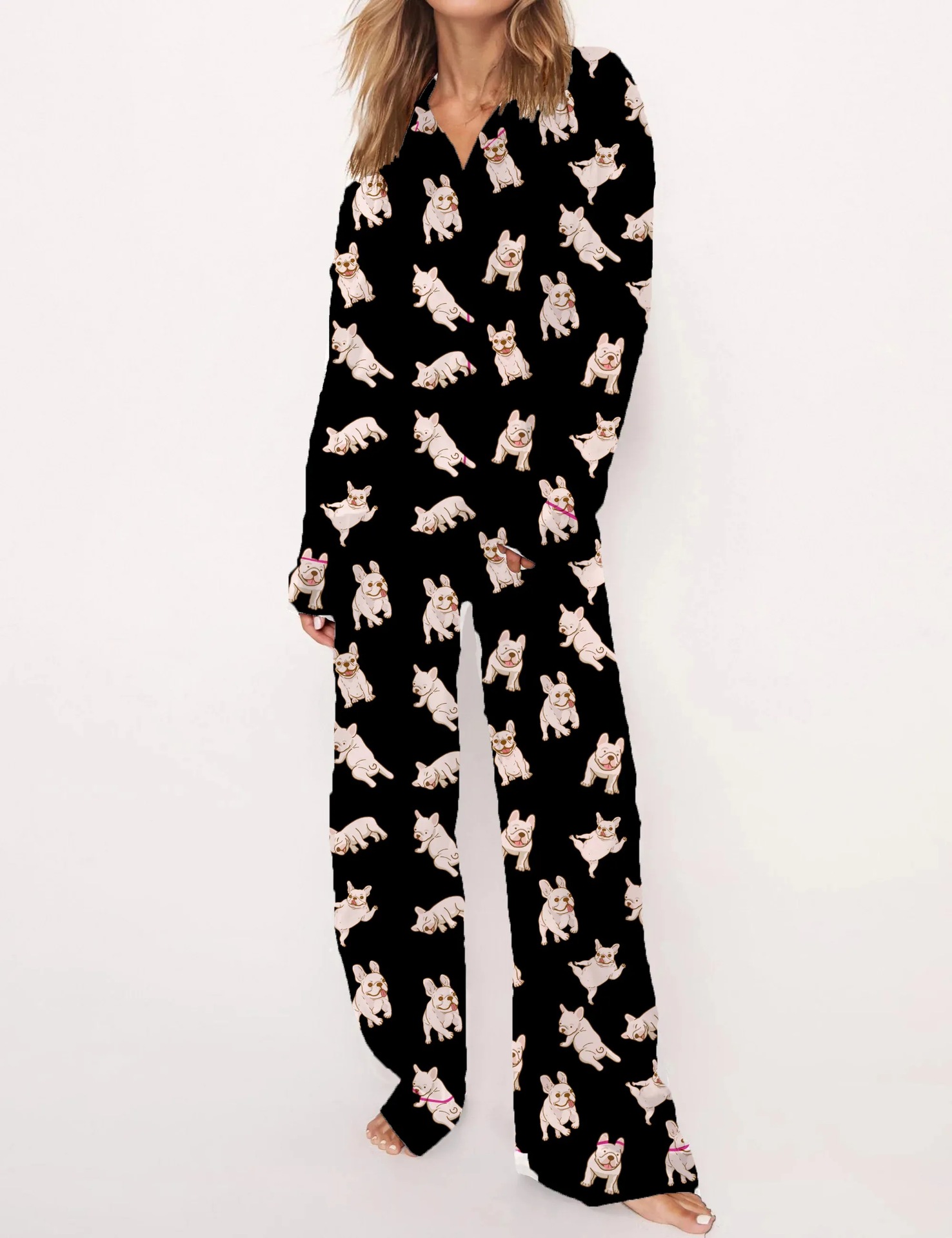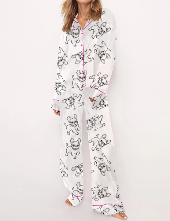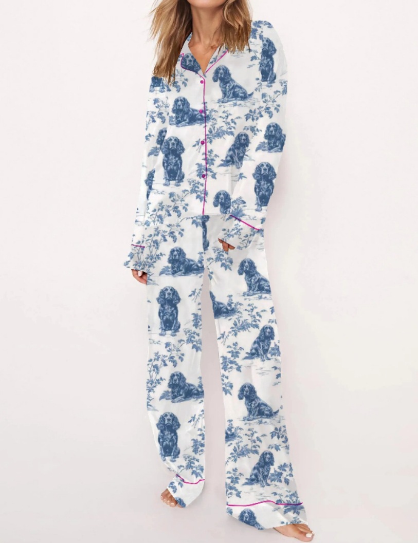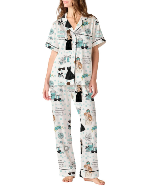 2024 국경 여름 새로운 아마존 AliExpress 인쇄 귀여운 잠옷 세트 긴 소매 바지 세트 여성