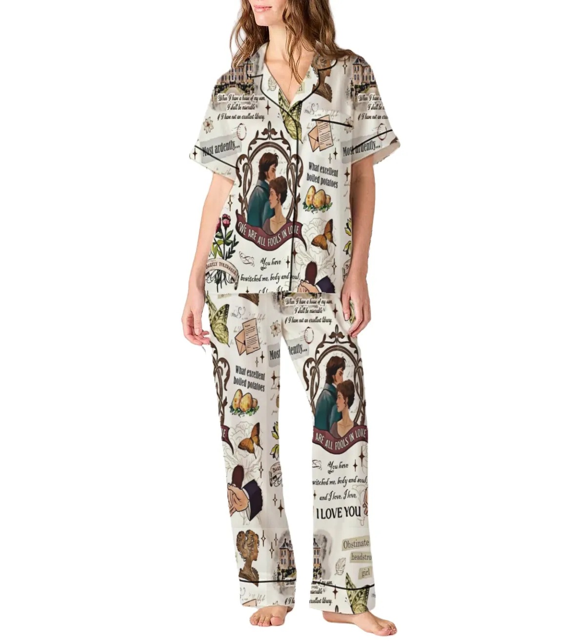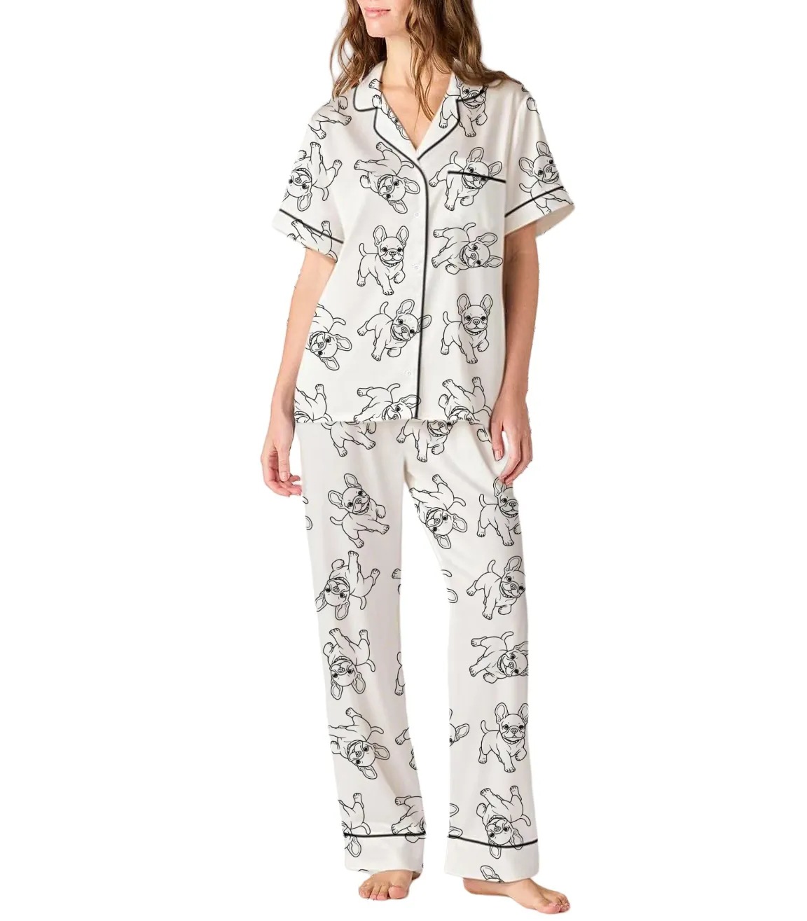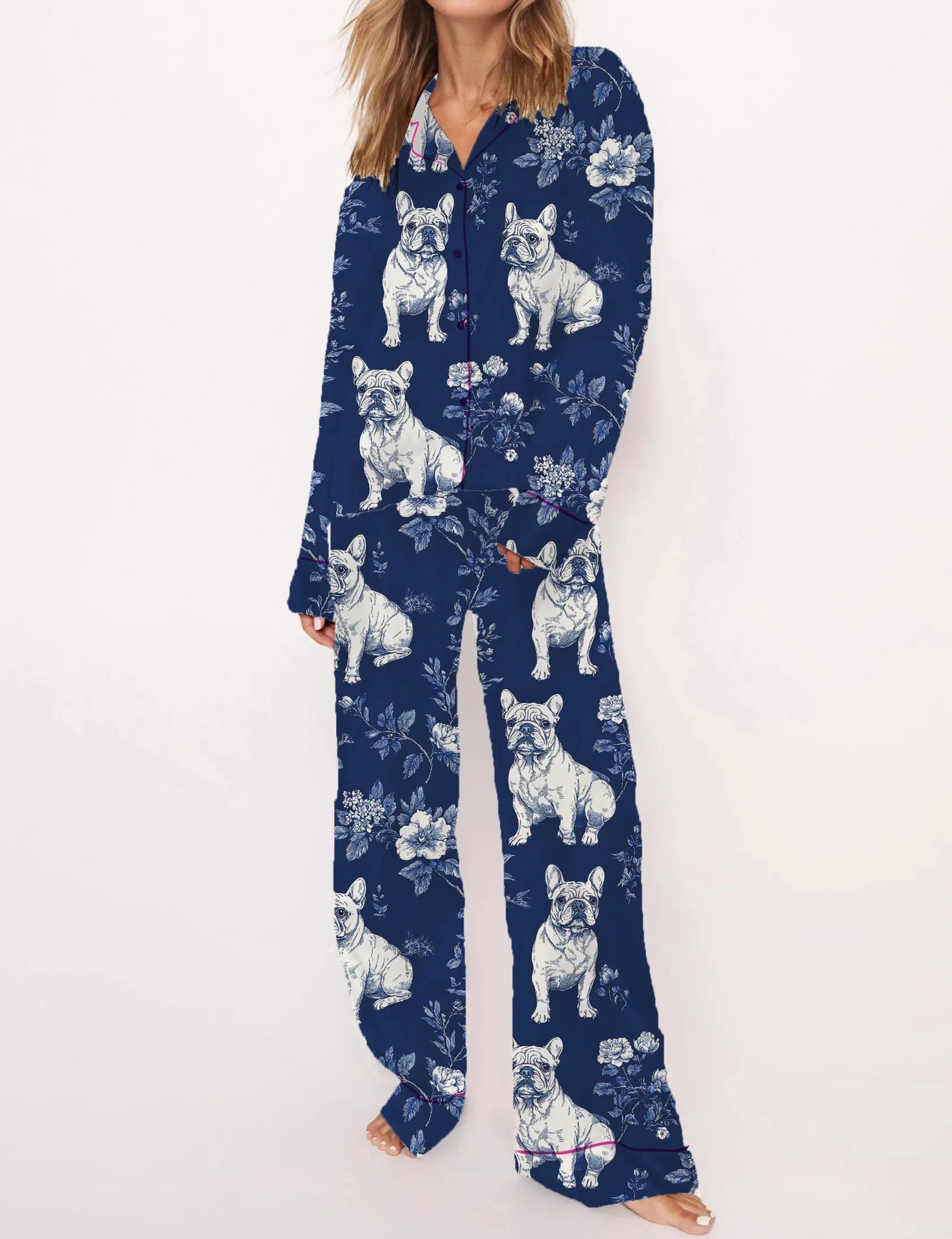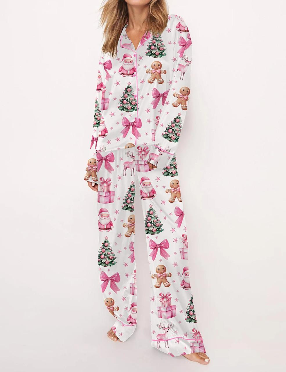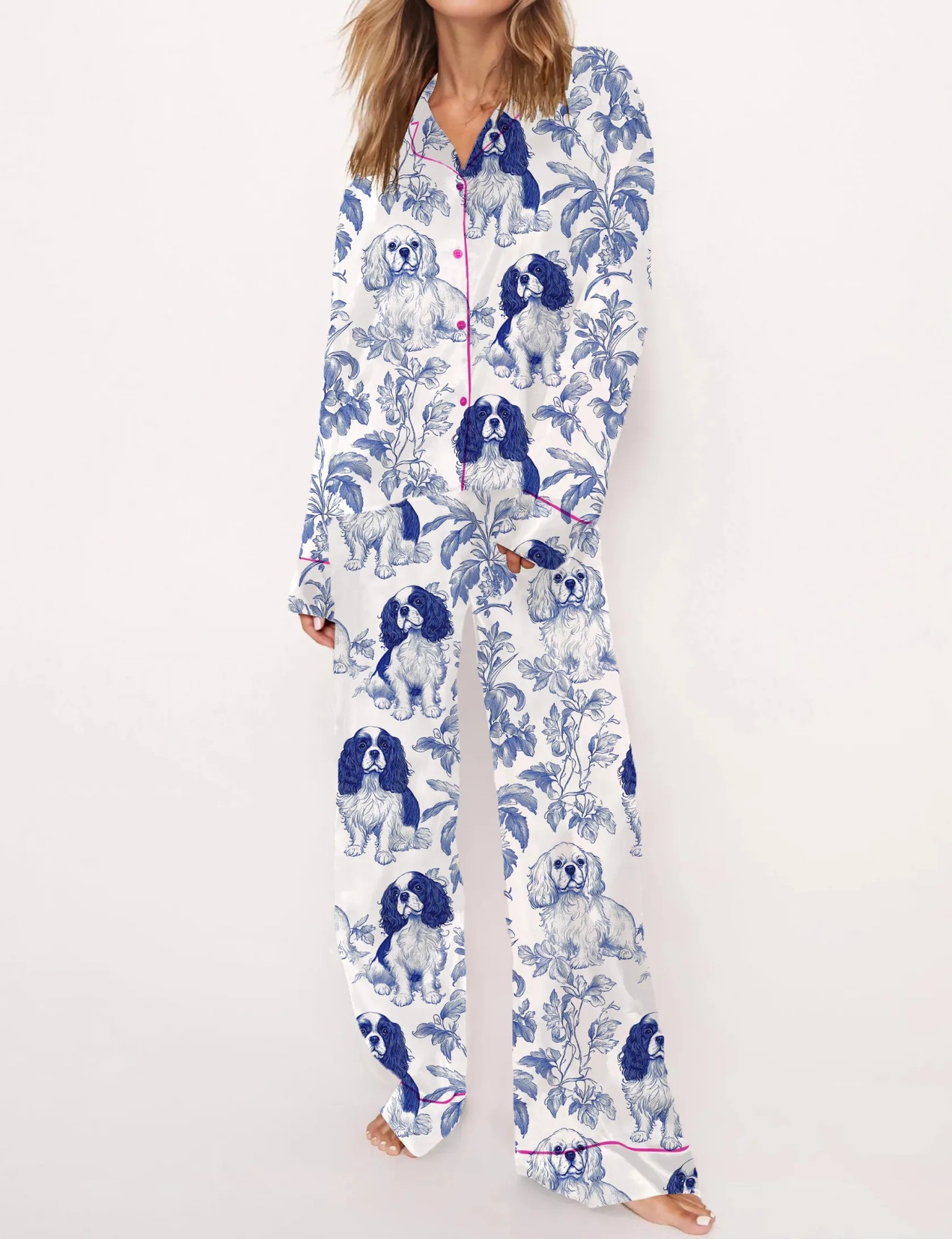 2024 국경 여름 새로운 아마존 AliExpress 인쇄 귀여운 잠옷 세트 긴 소매 바지 세트 여성