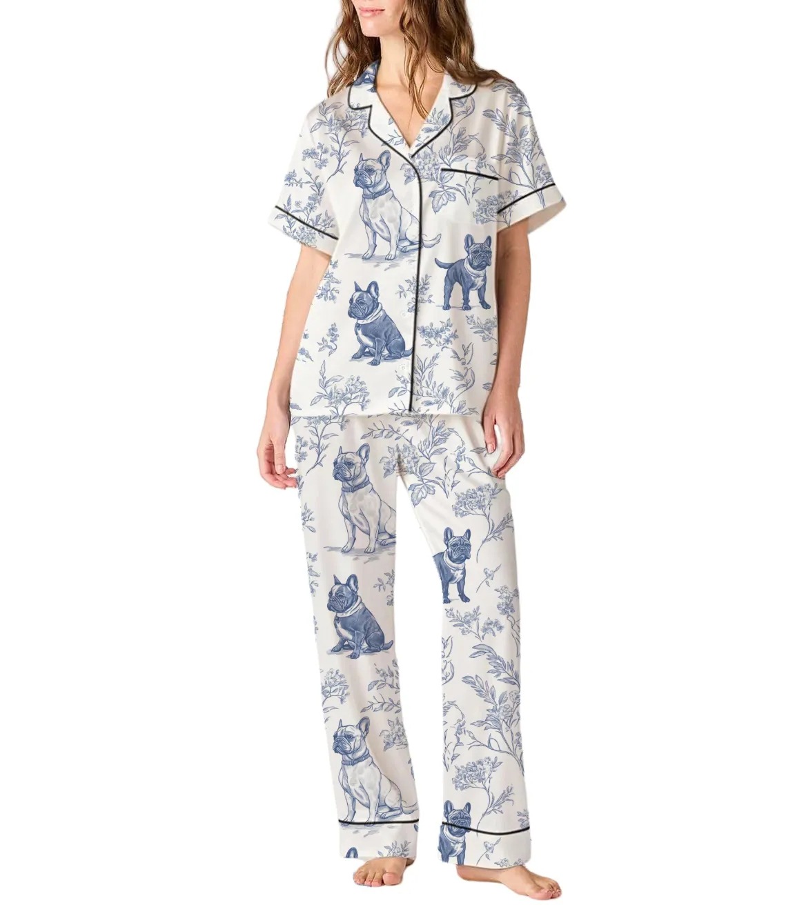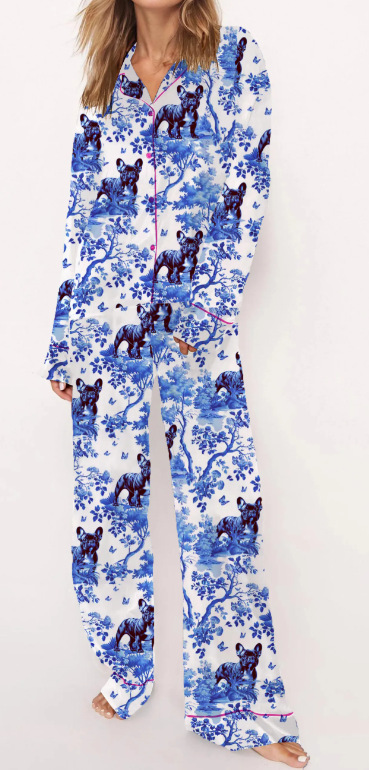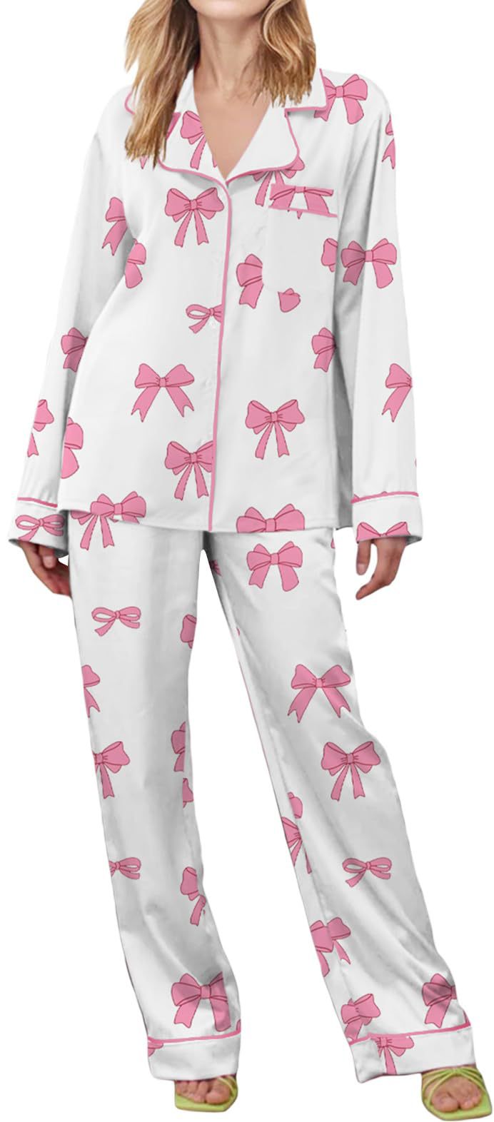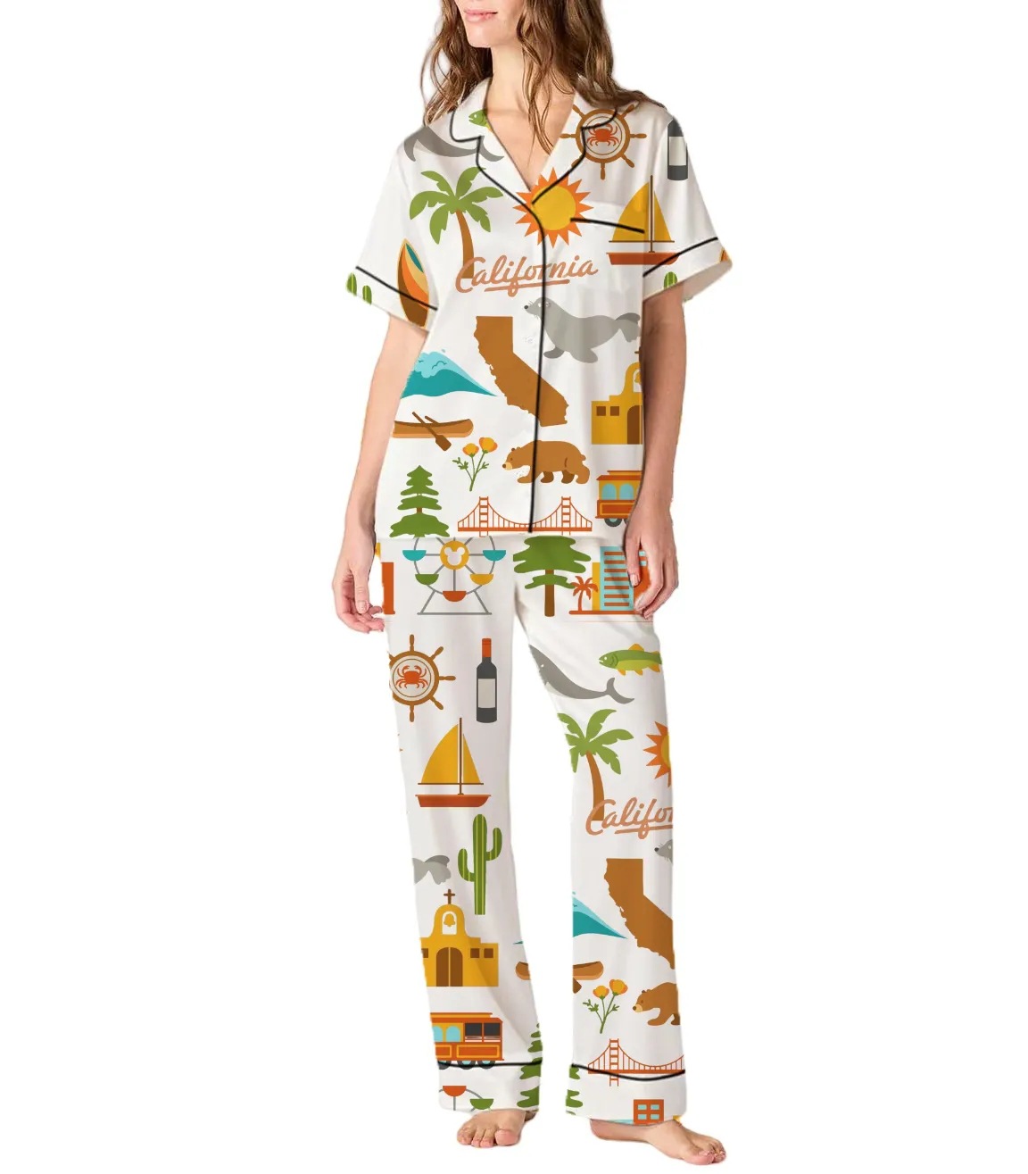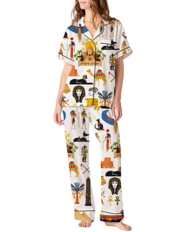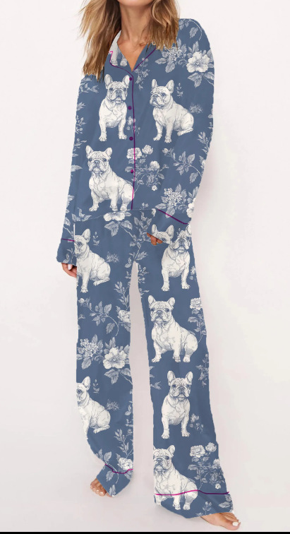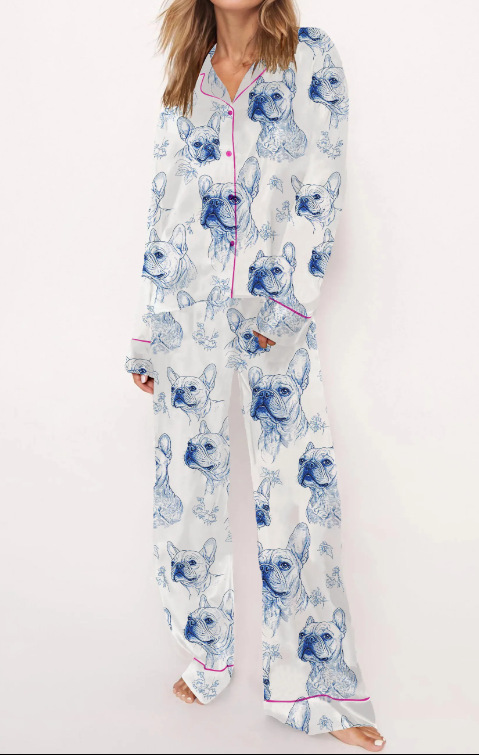 2024跨境夏季新款亚马逊速卖通印花可爱睡衣套装长袖长裤套装女士